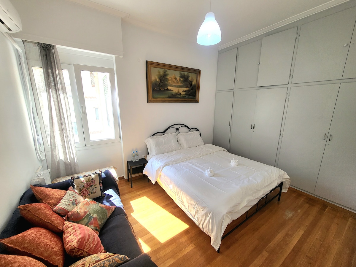 This modern, sun-drenched apartment enjoys a convenient location while at the same time providing easy access to Athens’ main attractions and vibrant districts. Located on the fourth floor, boasts one double bedroom and one double sofa bed in the living room, it can accommodate a total of four people and it’s perfect for families or groups of friends! Can't wait to welcome you to our new apartment! We are sure you'll enjoy it :-)