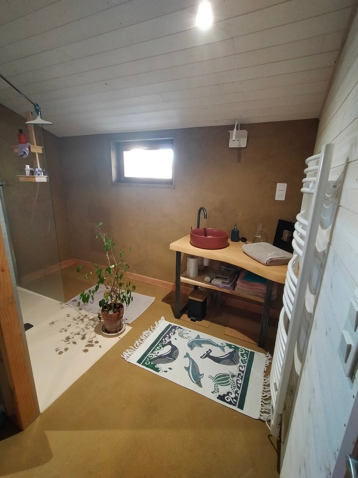 Ungewöhnliches Ensemble auf dem Land. Ökologischer Bau (Kalk, Hanf und Sand), bestehend aus 2 Kuppeln: einem kleinen Schlafzimmer und einem Wohnzimmer. Im Anbau eine Sommerküche mit dem Nötigsten (Geschirr, Utensilien, kleiner Kühlschrank, 2 Gasflammen...) eine Dusche und ein Waschbecken im Freien und Trockentoiletten. Diese Unterkunft wird mit Wasser aus einem Brunnen (wir stellen Trinkwasser zur Verfügung) und mit Strom versorgt. Dieser runde Lebensraum ist sehr gemütlich und warm.