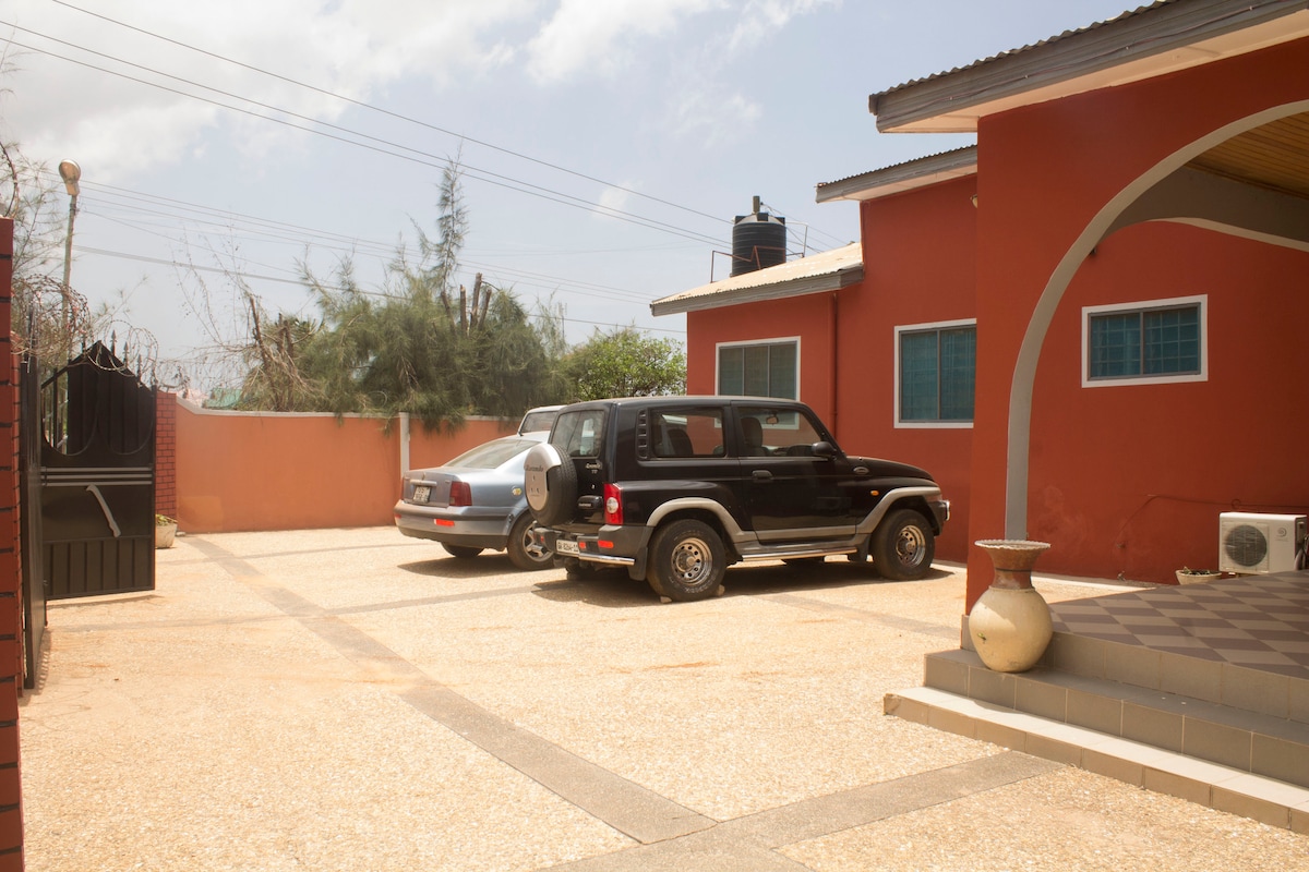 Sehr ruhige Umgebung und nur wenige Gehminuten vom Labadi Beach Shores entfernt. Einfacher Transport (tro tro, Taxi , Uber ) mit Verbindung nach Osu,Ga Mashie, Tema etc ... Es ist ein Musikhaus mit einem privaten Studio.