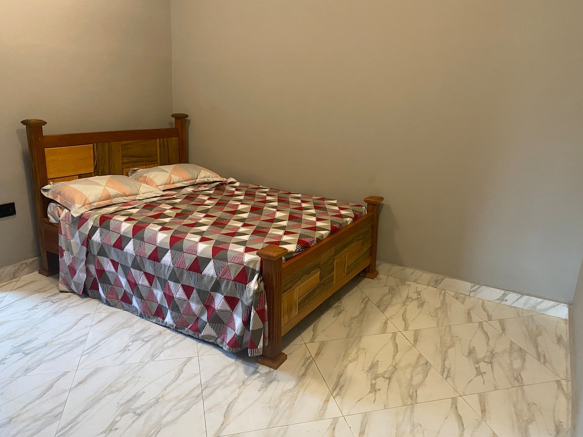 Dieses schöne Bed & Breakfast befindet sich in einem neu gebauten Gebäude. Die Unterkunft befindet sich im Herzen von Labadi, das sich in einem zentralen und sicheren Viertel in Accra und in Strandnähe befindet. Du befindest dich auch 15 Minuten vom internationalen Flughafen entfernt, mit allem Notwendigen wie Klimaanlage, WLAN, Fernseher, 24-Stunden-Sicherheitsdienst usw. Du hast Zugang zum hauseigenen Swimmingpool, zur Außenbar, zum kostenlosen Frühstück und zu kostenlosen Parkplätzen. * *Bitte beachte, dass dieses Zimmer über ein Queensize-Bett verfügt.