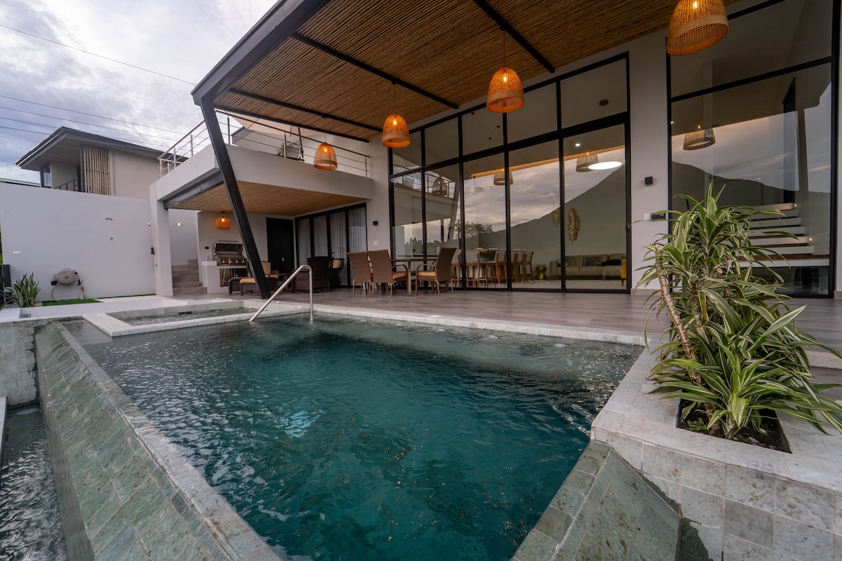 Diese exklusive und stilvolle Unterkunft bietet einen herrlichen Blick auf den Vulkan, der von überall im Haus genossen werden kann. Nimm dir einen Moment Zeit, um frische Luft von der Terrasse zu atmen und dich mit der Natur in deiner Umgebung zu verbinden, all das, während du eine warme Tasse Costa Ricas bestem Kaffee genießt. Nach einem Tag voller Erkundungen und Wanderungen zum berühmten Wasserfall kommst du zurück, um dich am Pool mit Düsen zu entspannen und für einen weiteren Tag voller Spaß aufzutanken.