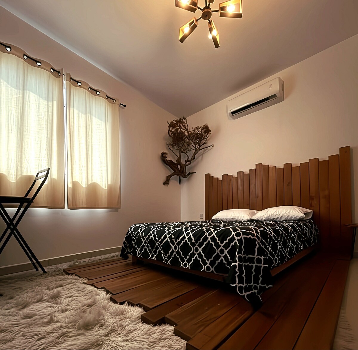 Komplett neues 40 m2 großes Luxuszimmer mit einzigartigen Annehmlichkeiten, entworfen, um eine angenehme Ruhe zu haben und die Atmosphäre des Valle de Guadalupe zu erleben. Geeignet für zwei Personen in einem Queensize-Bett, Klimaanlage vorhanden, Leseecke mit 2 Sofas in einem sehr gemütlichen und sauberen Raum, Kaffeemaschine vorhanden. Das Badezimmer ist modern und geräumig und mit Annehmlichkeiten wie: Kosmetikspiegel, Seife, Shampoo, Spülung und Handtüchern ausgestattet.