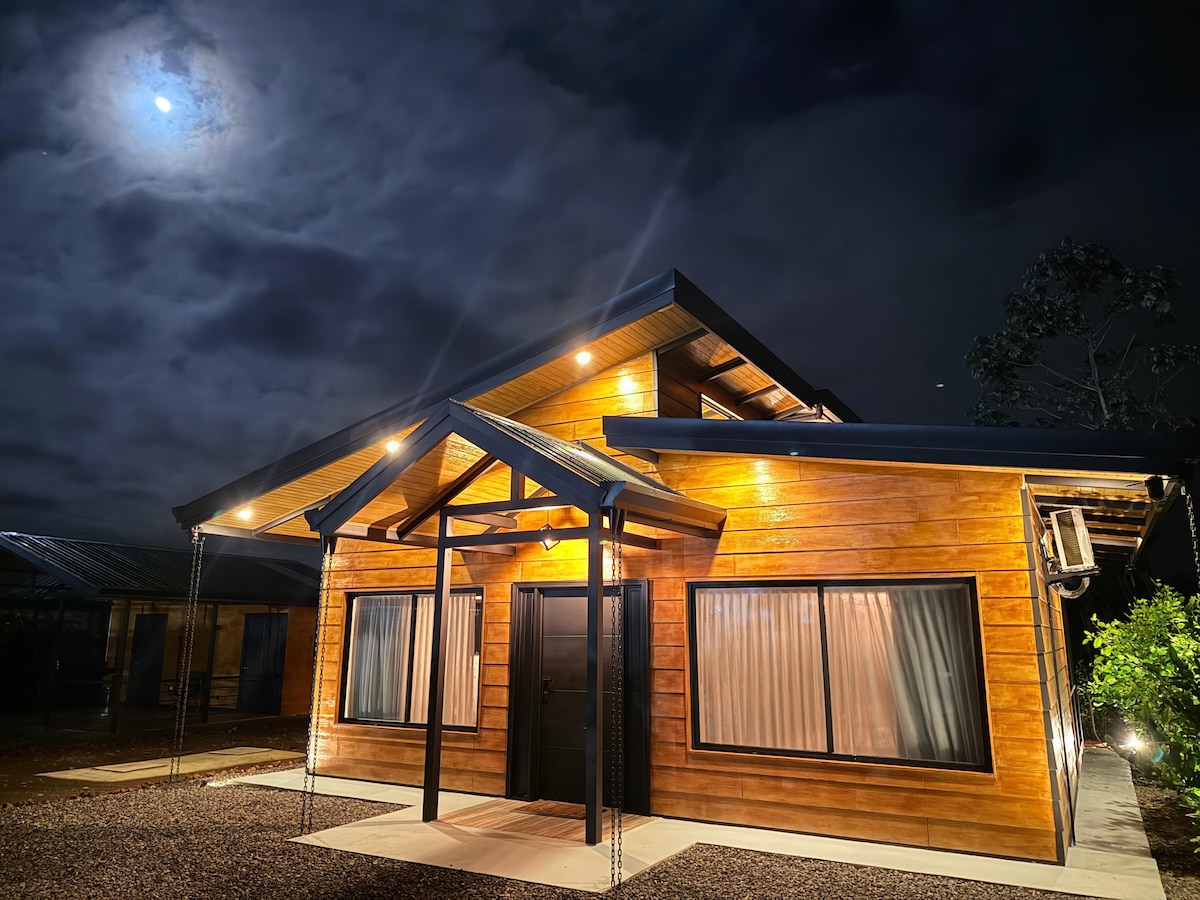 Welcome to Tres Volcanes, a luxury wood & glass Cabin located within a 56 acres ranch. Strategically built at the highest point of the property, from where you can see the Arenal, Tenorio and Rincón de la Vieja volcanoes on the horizon. You will be able to rest with the sound of the river that passes at the foot of the mountain and wake up to have a cup of coffee while the mist disappears through the treetops. Just in time to walk to the dairy and experience milking by your hands & collect eggs.