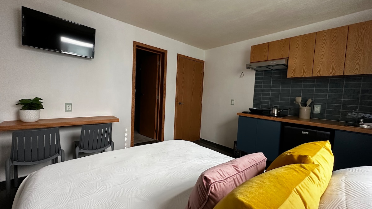 Disfruta de nuestros alojamientos diseñados especialmente para que tengas la mejor estadía en tu visita a Guadalajara. Es una propiedad recién remodelada, cuenta con 8 estudios y una agradable terraza. Nuestro estudio 7, cuenta con su amplio baño completo, una cómoda cama matrimonial , su smart Tv y una cocineta equipada, con acabados de lujo. espacios limpios y un diseño que te invitará a relajarte y descansar, además de disfrutar una de las mejores zonas de la ciudad.