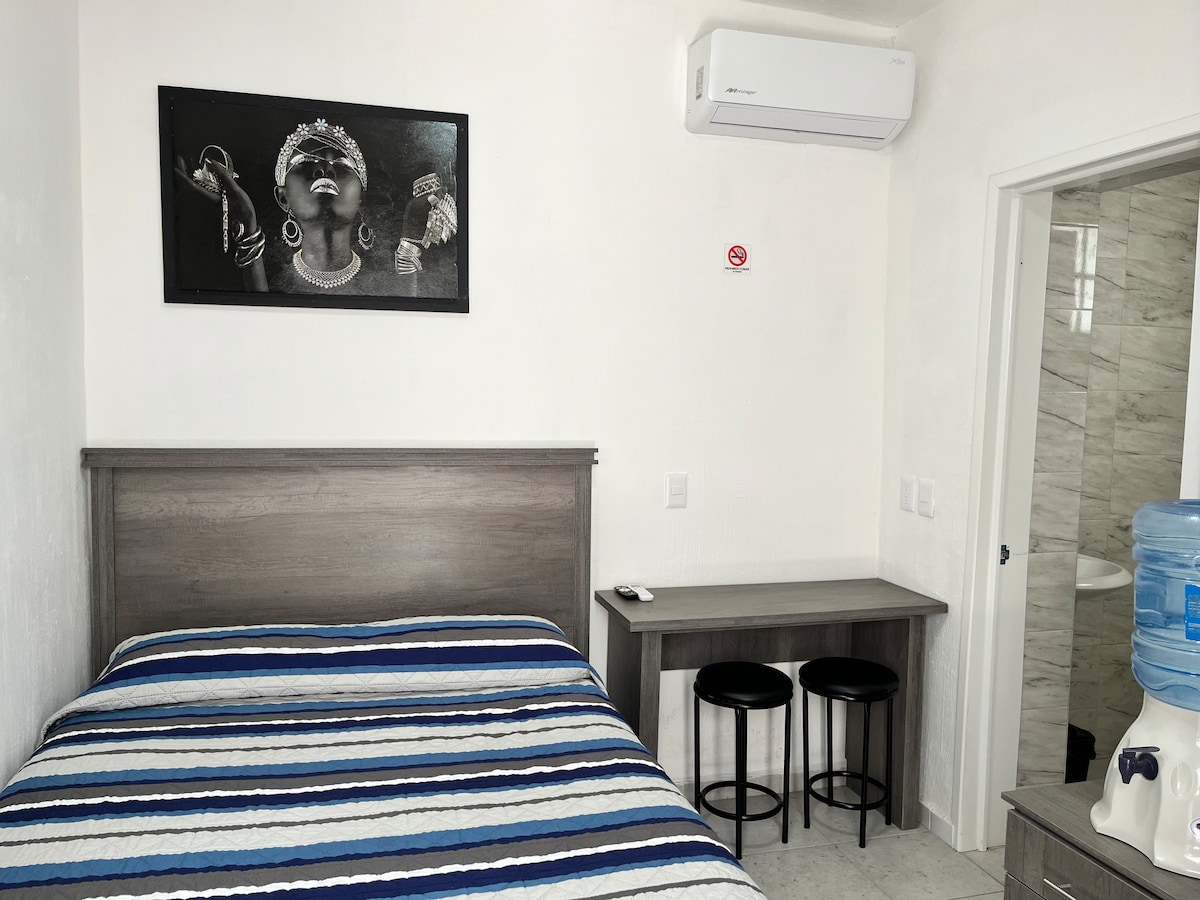 Modern Loft located in the heart of Guadalajara. Feel at home in a comfortable loft with 24/7 security, and amenities with A/C (Gym, CoWorking and Playground). The Historic Center is a neighborhood with beauty and tradition, where you will have a few blocks from the most emblematic places, 650m from Plaza Tapatía, 800m from Hospicio Cabañas, 850m from San Juan de Dios Market and just a few steps from Degollado Theater, Plaza Liberación, Guadalajara Cathedral and the Rotonda de los Jaliscienses.