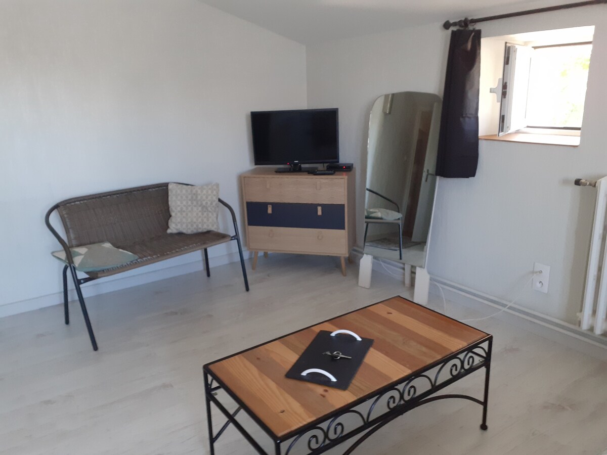 Komplett unabhängiges und komplett renoviertes Studio auf dem Land. Ideal für zwei Personen, mit der Möglichkeit, ein zusätzliches Kinderbett hinzuzufügen. Sie besteht aus einer ausgestatteten Küche, einem Doppelbett, einem Duschbad und einem separaten WC. Bett- und Badwäsche sind vorhanden. Das Studio befindet sich neben unserem Haus. Weniger als 10 Minuten von Cholet, 2 Minuten von der Autobahn N249 und 5 Minuten von der Marques Avenue entfernt. In der Nähe von Puy du Fou und dem Parc Oriental de Maulevrier.