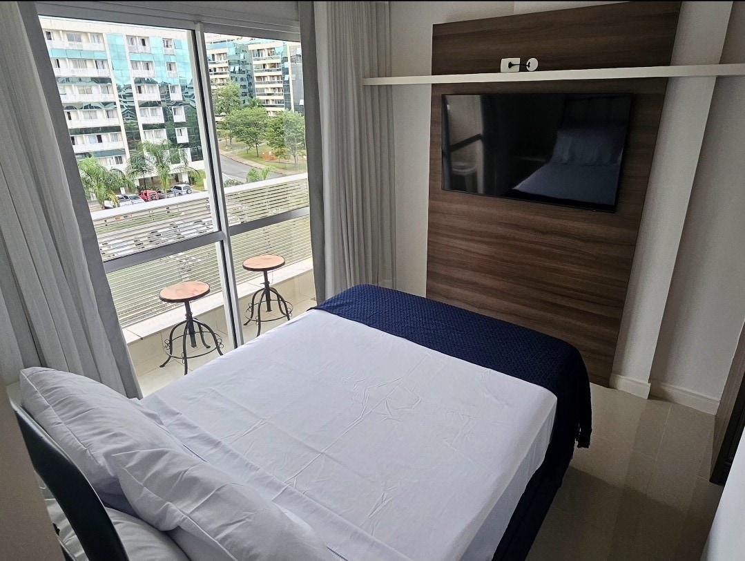 Dieses charmante 51 m ² große Apartment bietet einen Balkon mit einem atemberaubenden Blick auf den Paranoá-See sowie mit Blick auf die Quelle und verfügt über einen großen privaten Balkon. Der Innenraum ist ausgestattet und umfasst eine voll ausgestattete Küche, einen Kühlschrank, ein Wohnzimmer, eine Suite mit Doppelbett und eine bequeme Schlafcouch. Einrichtungen wie Internet, Kabelfernsehen, Bettwäsche und Handtücher sind ebenfalls vorhanden, was den Gästen Komfort und Bequemlichkeit bietet.