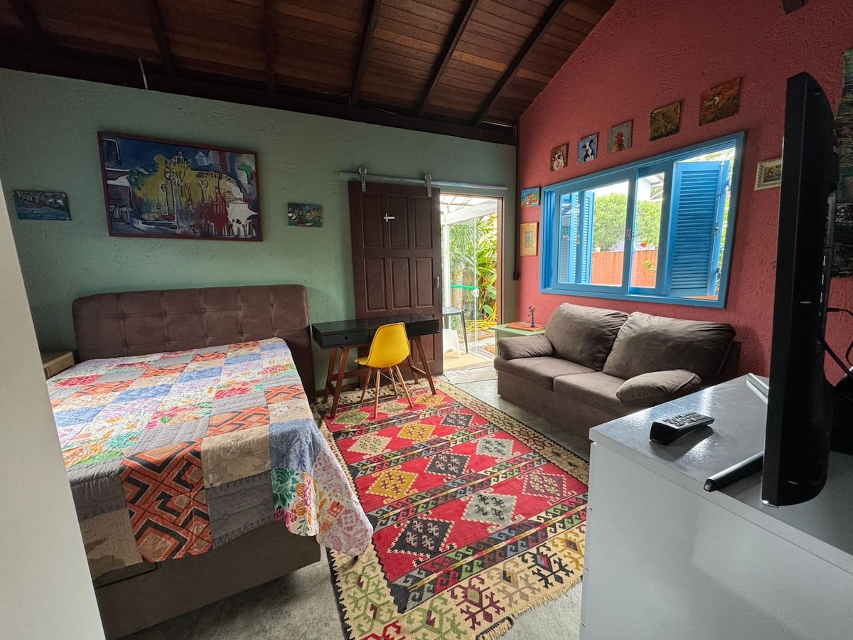Kasinha ist eine Unterkunft von ca. 16 m², komfortabel und weniger als 500 m vom Strand von Campeche entfernt (hier ist es erwähnenswert, dass es nicht in Campeche Central ist). 9 km vom See Lagoa da Conceição, 8,8 km vom Flughafen und 15 km vom Zentrum entfernt. Kasinha verfügt über ein Doppelbett, Küche, Bad, Hängematte und kleinen Grill. Es gibt ein privates Tor, aber das Auto wird auf einem mit den Besitzern geteilten Hof geparkt. HINWEIS: Aufgrund des begrenzten Platzangebots akzeptieren wir keine großen Haustiere.