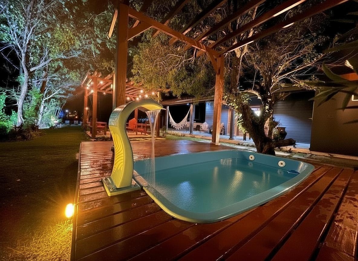 Modernes und gut eingerichtetes Haus mit einem atemberaubenden Blick auf den Lagoa. Große Suite, Queensize-Bett, Bett- und Badwäsche, beheizter Whirlpool, Whirlpool, Chromtherapie, Bubble-System, Kamin, Klimaanlage, WLAN, 32-Zoll-Fernseher, ausgestattete Küche und Balkon mit Grill. Auf einem 1 Hektar großen Anwesen an der Lagune gelegen. Bietet SUP, Kajak, Hof, Sandplätze, Bootsanleger, Jet-Ski, Angelbecken oder ein schönes Lagunenbad vor dem Haus. Perfekt für unvergessliche Momente!