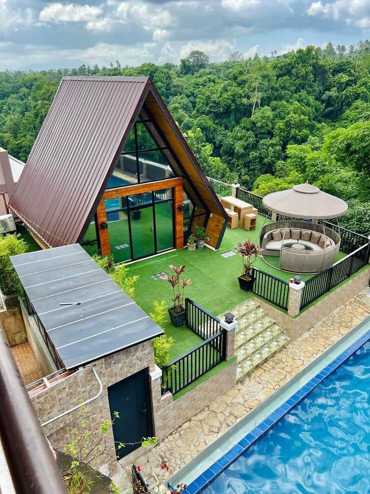 Schweizer Hütte mit Pool und Essen im Freien | Silang