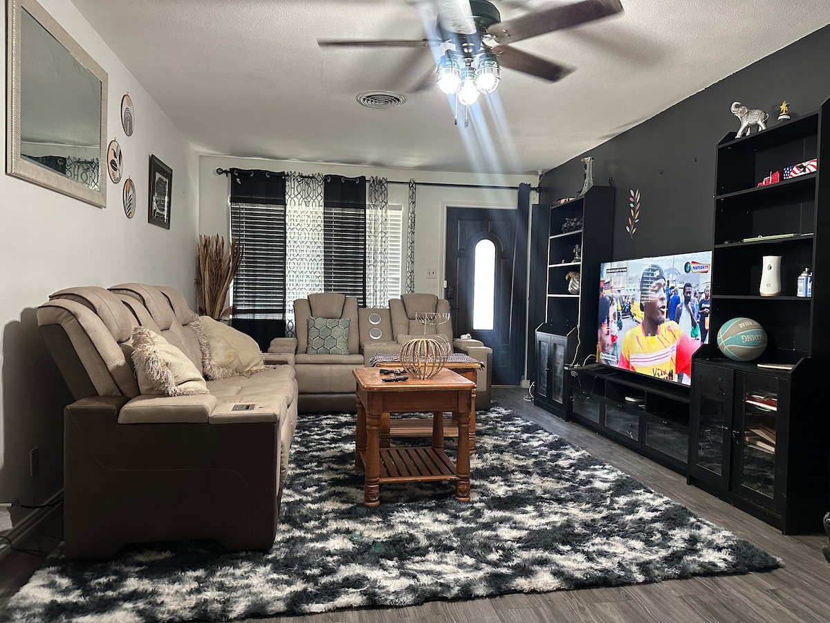 ATT Stadium – 5 Meilen. In der Nähe von DFW. 4 Zimmer – Kombinierter Wohn-/Essbereich, 1 Schlafbereich mit Queensize-Bett, komplettes Bad. Küchenzeile – Kaffeekanne, Mikrowelle/Umluftofen, Geschirrspüler, Kühlschrank, Kochfeld, elektrische Bratpfanne, Schmortopf, Utensilien, Geschirr, Glaswaren, Töpfe/Pfannen. 32-Zoll-Flachbildfernseher (Direct TV Select (155 Kanäle, On Demand). Kein Smart-TV, aber mit HDMI-Eingängen für deine persönlichen Streaming-Geräte. „Grünes“ Eigentum – klimatisiertes Recycling. Rauchen/Dampfen verboten innerhalb von 20 Fuß vom Grundstück entfernt.