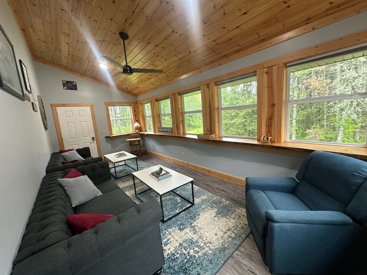 Erlebe die Ruhe und Gelassenheit der nördlichen Wälder mit wildlebenden Tieren im Überfluss – nur 10 Minuten vom Stadtzentrum von Duluth entfernt. Dieses maßgefertigte 4000 Quadratfuß große Haus befindet sich auf 40 Hektar und schafft die Privatsphäre, von der du träumst. Das Interieur verfügt über einen offenen Grundriss mit natürlicher Beleuchtung, eine individuelle Küche, Gaskamine und einen Bereich zum Zusammenkommen. Diese Unterkunft bietet einen Blick auf wunderschöne, mit Wildtieren gefüllte Teiche. Beobachte die wunderschönen Sonnenuntergänge von der Terrasse aus, die mit einem Gasfeuer im Freien ausgestattet ist. Zugang zu staatlichen Schneemobilwegen