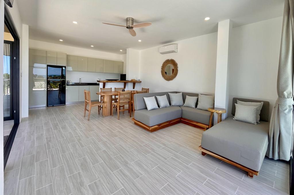 Wir würden dich gerne in unserer Villa mit 2 Schlafzimmern willkommen heißen, die 10 Gehminuten vom Strand entfernt liegt. Genieße 2 Schlafzimmer mit Blick auf den Pool im Obergeschoss, das Wohnzimmer, die minimalistische Küche und den Essbereich mit Meerblick. Wir freuen uns darauf, dich willkommen zu heißen und deinen Urlaub unvergesslicher zu machen!