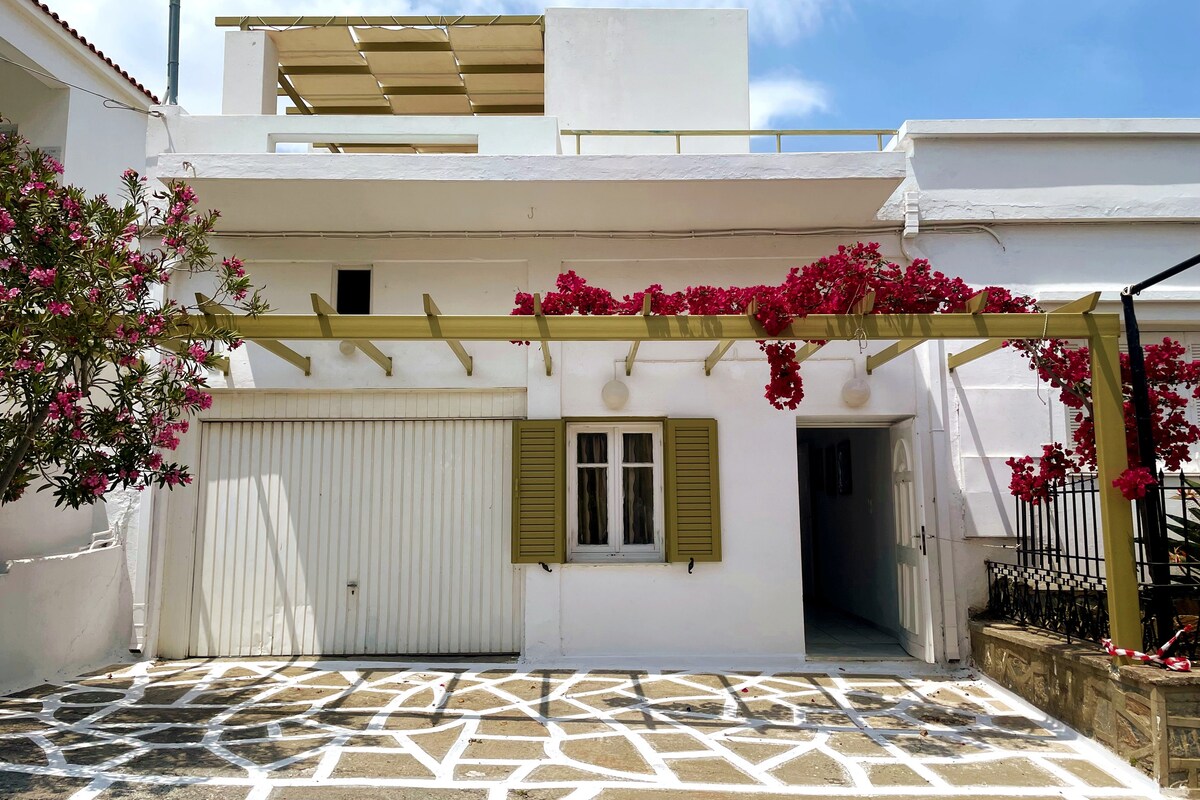 Είναι μία νεόχτιστη πέτρινη τριώροφη μεζονέτα όπου στο ξεχωριστό κάτω όροφο μένουν οι ιδιοκτήτες. Το σπίτι είναι διαρρυθμισμένο στο ισόγειο κουζίνα, σαλόνι, τραπεζαρία και WC και στον 1 όροφο είναι 2 κρεβατοκάμαρες και το μπάνιο. Έχει εκπληκτική θέα στην παραλία του Αγ. Πέτρου και από τις δύο βεράντες του. Είναι μόλις 3km από το λιμάνι και 4km από το τουριστικό Μπατσί. Η παραλία βρίσκεται σε απόσταση 500μ από την οικία και επί της περιοχής υπάρχουν ταβερνάκια , πρατήριο άρτου και σούπερ μάρκετ