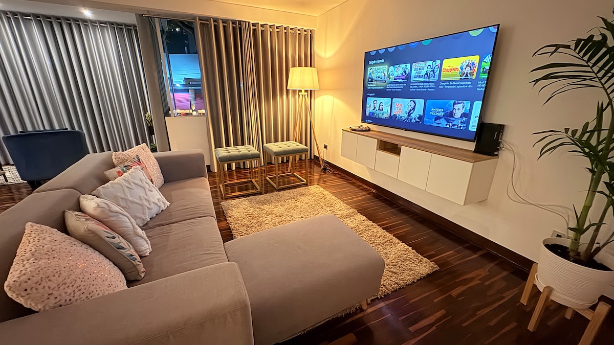 Hallo zusammen! Mein Name ist Pedro und das ist meine brandneue Wohnung, die speziell für euch entworfen wurde, um einen tollen Aufenthalt zu haben! Die Wohnung befindet sich neben Larcomar, im wunderbaren Viertel Miraflores, einem der schönsten Viertel Limas. Du wirst im Grunde von allem umgeben sein: tolle Restaurants, Strände, Parks, Cafés, Kunstgalerien, Einkaufszentren usw., während sich die Wohnung gleichzeitig in einer sehr friedlichen und ruhigen Straße befindet!