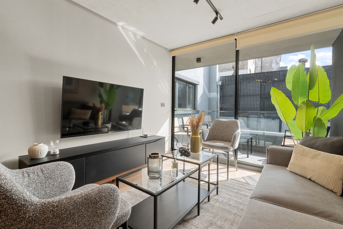 Genieße die Ruhe der Stadt in einem modernen, hellen Raum voller Details, die dich wie zuhause fühlen lassen. Diese Wohnung kombiniert Komfort, Design und Funktionalität in einer warmen und entspannten Atmosphäre. Nur wenige Schritte von der U-Bahn Salvador entfernt, bist du in der Nähe von Parks, Cafés und Restaurants, aber weit genug entfernt, um dich in einer grünen und ruhigen Umgebung auszuruhen. Perfekt für kurze oder lange Aufenthalte, ist es die ideale Balance zwischen Stadtleben und einem Gefühl von Zuhause.