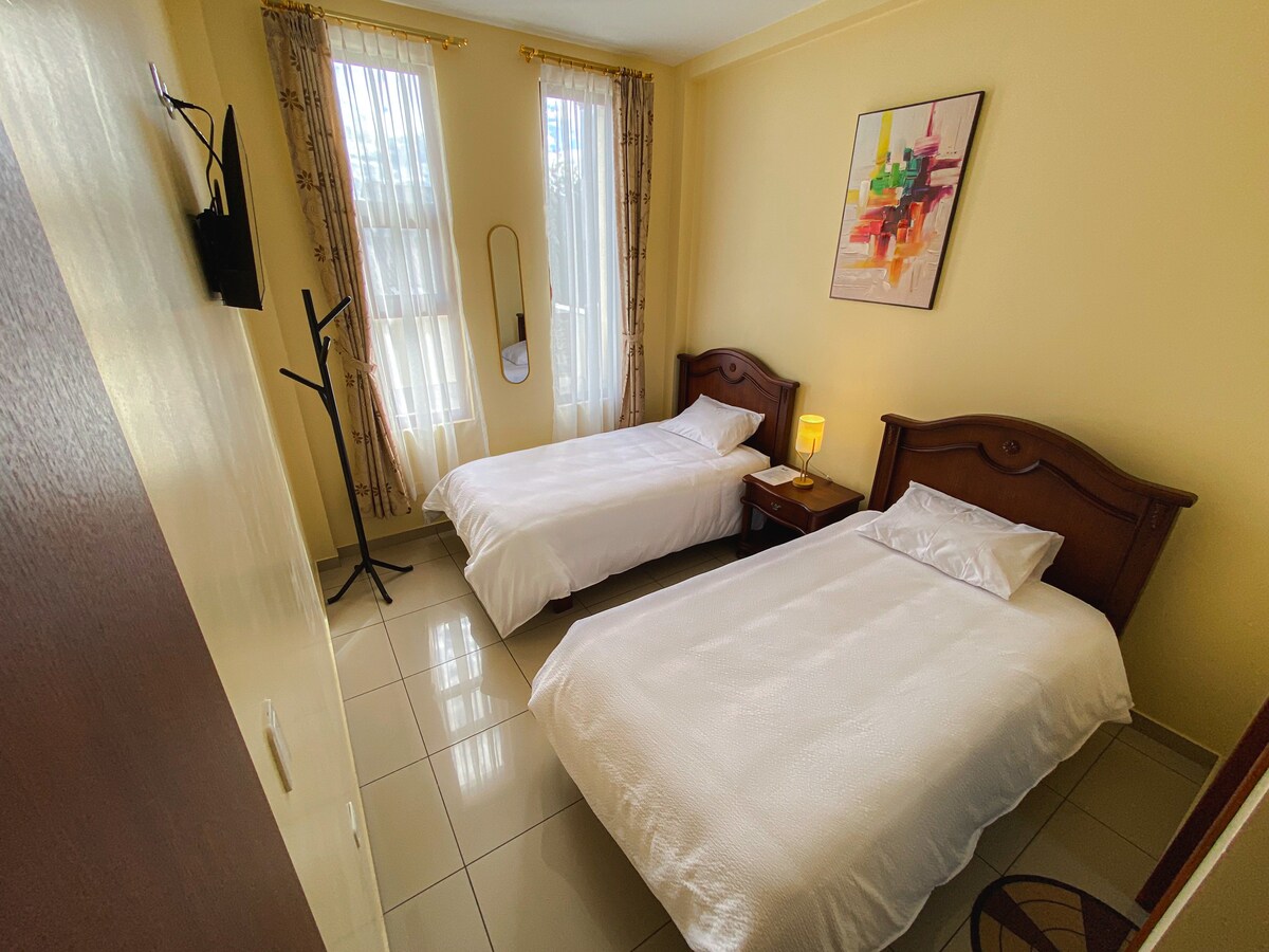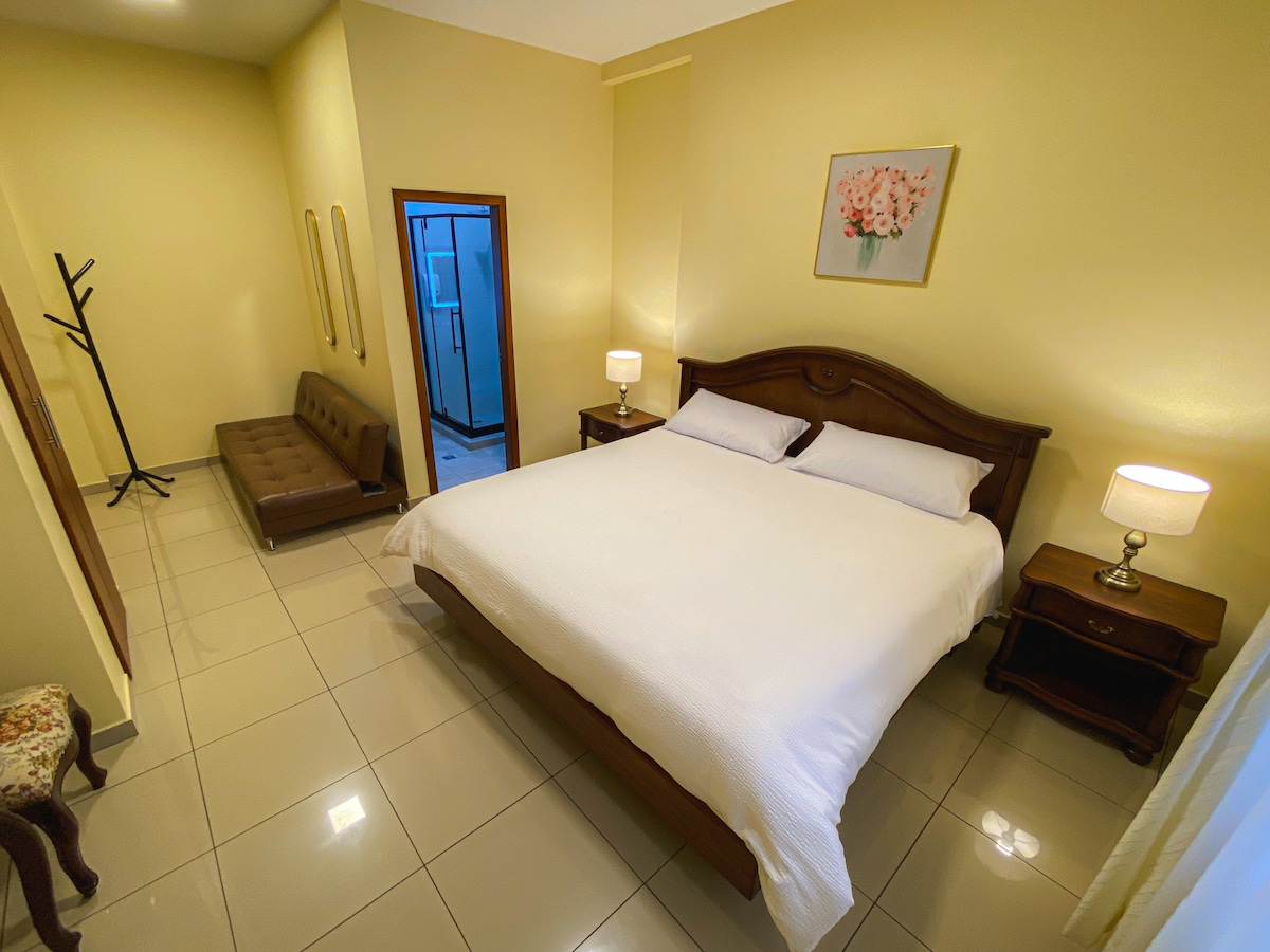 Ein einzigartiges Design in der sichersten und ruhigsten Nachbarschaft der Stadt. Ein exklusives Schlafzimmer mit feinen Details und kompletter Ausstattung wie: kleiner Kühlschrank, Arbeitstisch, bequemes Möbelset und vieles mehr. Ein verstecktes Juwel in der Stadt. 10 Gehminuten von der Innenstadt entfernt, in der Nähe von Lebensmittelgeschäften, Bushaltestellen und Restaurants. Perfekt für Familien oder langfristige Geschäftsleute, da es einen voll ausgestatteten Fitnessraum, einen Tagungsraum, einen Konferenzraum und eine Terrasse hat. Einzigartiges Design