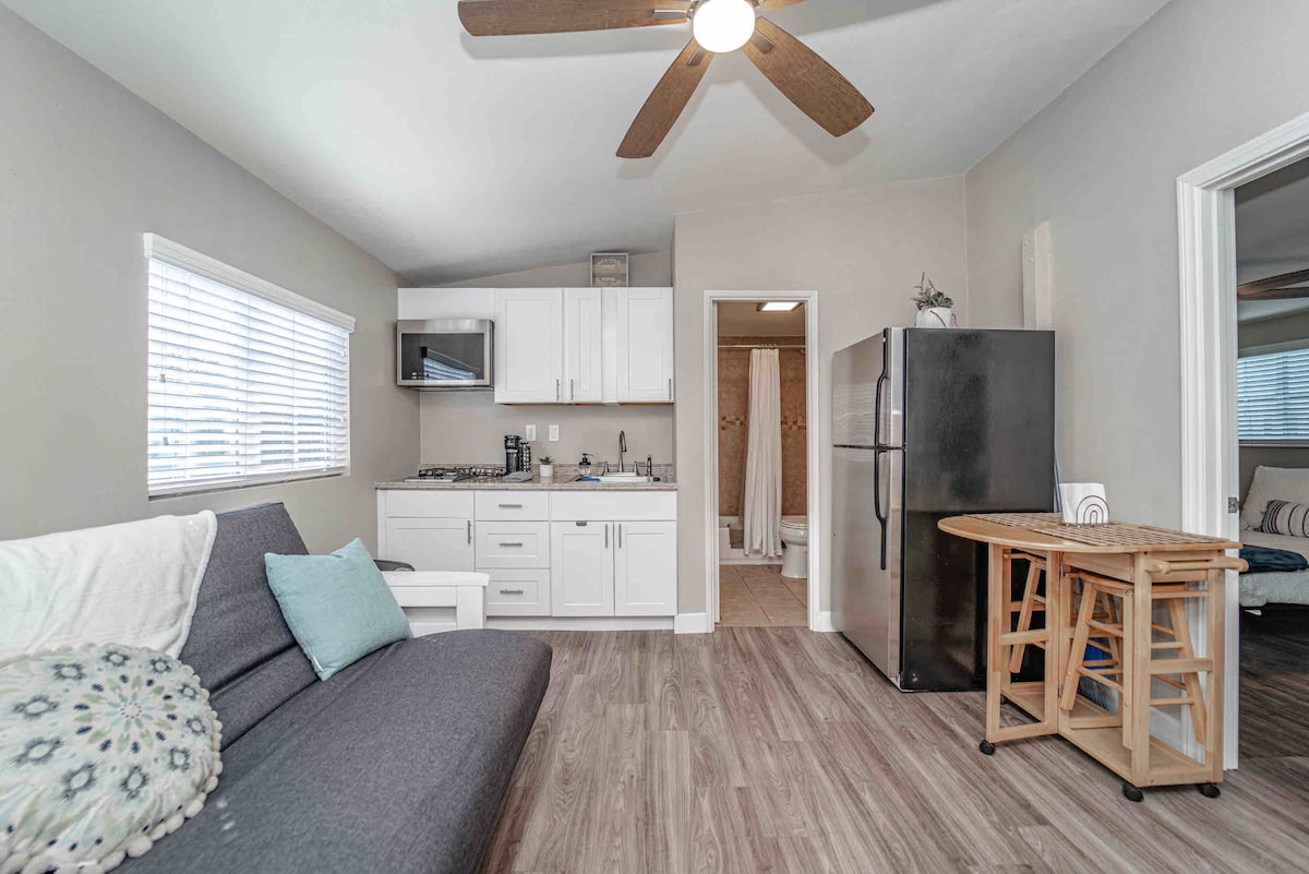 Ein modernes, frisch renoviertes Casita in Hawthorne, CA, in der Nähe des Flughafens LAX, des SoFi-Stadions und der Strandstädte. Die Autobahnen 405 und 105 sind ebenfalls in der Nähe. Die Unterkunft verfügt über ein Queensize-Bett, schnelles und kostenloses, unbegrenztes 40-Mbit/s-WLAN und einen Roku-fähigen Fernseher. Funktionalität und Design helfen, den Raum zu maximieren. Entspanne dich im Hinterhof unter den hängenden Lichterketten und dem Grill oder koche drinnen in einer komplett renovierten Küche. Ausziehsofa (Größe – fast voll) im Wohnzimmer vorhanden.