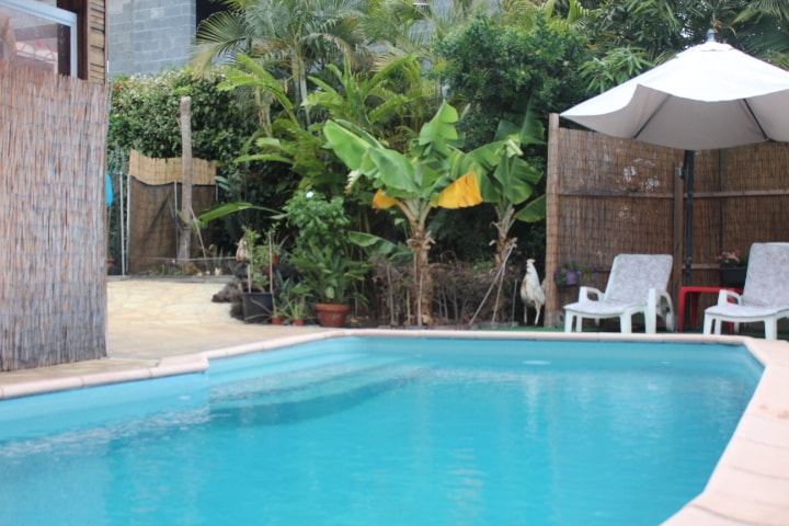 Ruhig und charmant, in einem tropischen Garten. Das Studio mit seiner kleinen, ausgestatteten Außenküche und seiner privaten Terrasse ist unabhängig vom Haus. Pool und Kiosk stehen zur freien Verfügung, um den Sonnenuntergang am Abend über dem Indischen Ozean bei einem Cocktail zu genießen... In der Nähe des Strandes von Boucan Canot, seiner Bars und Restaurants (10 Minuten zu Fuß) Geschäfte und Buslinien in der Nähe (5 Minuten zu Fuß).