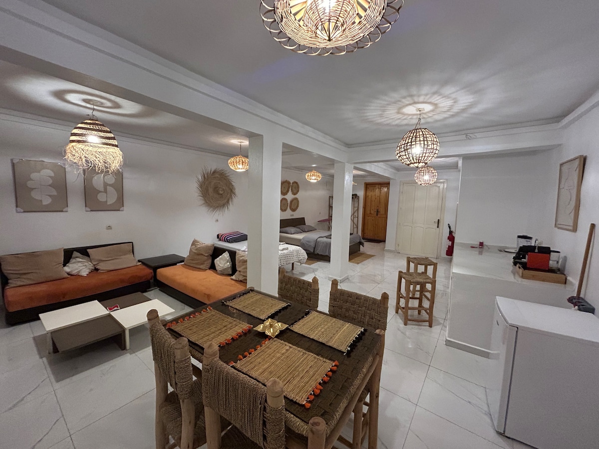 Bienvenue dans notre studio parfait pour une escapade de surf, situé au dernier étage d'un immeuble privé à Mirleft, offrant une vue imprenable sur l’ocean . Cet espace tout-en-un est idéal pour une escapade de surf en solo ou en couple. Le studio comprend un coin nuit confortable avec lit double et simple, une kitchenette bien équipée, le tout dans une seule pièce harmonieuse. À deux pas, profitez de la terrasse de l’immeuble, parfaite pour admirer le coucher de soleil.