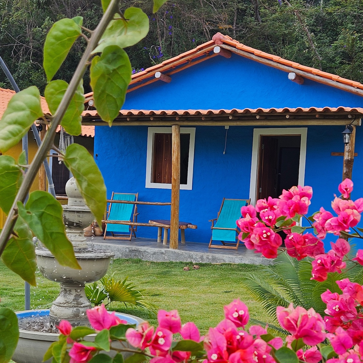 Casa Azul -Vila Celso de Gil Neben dem Wasserfall