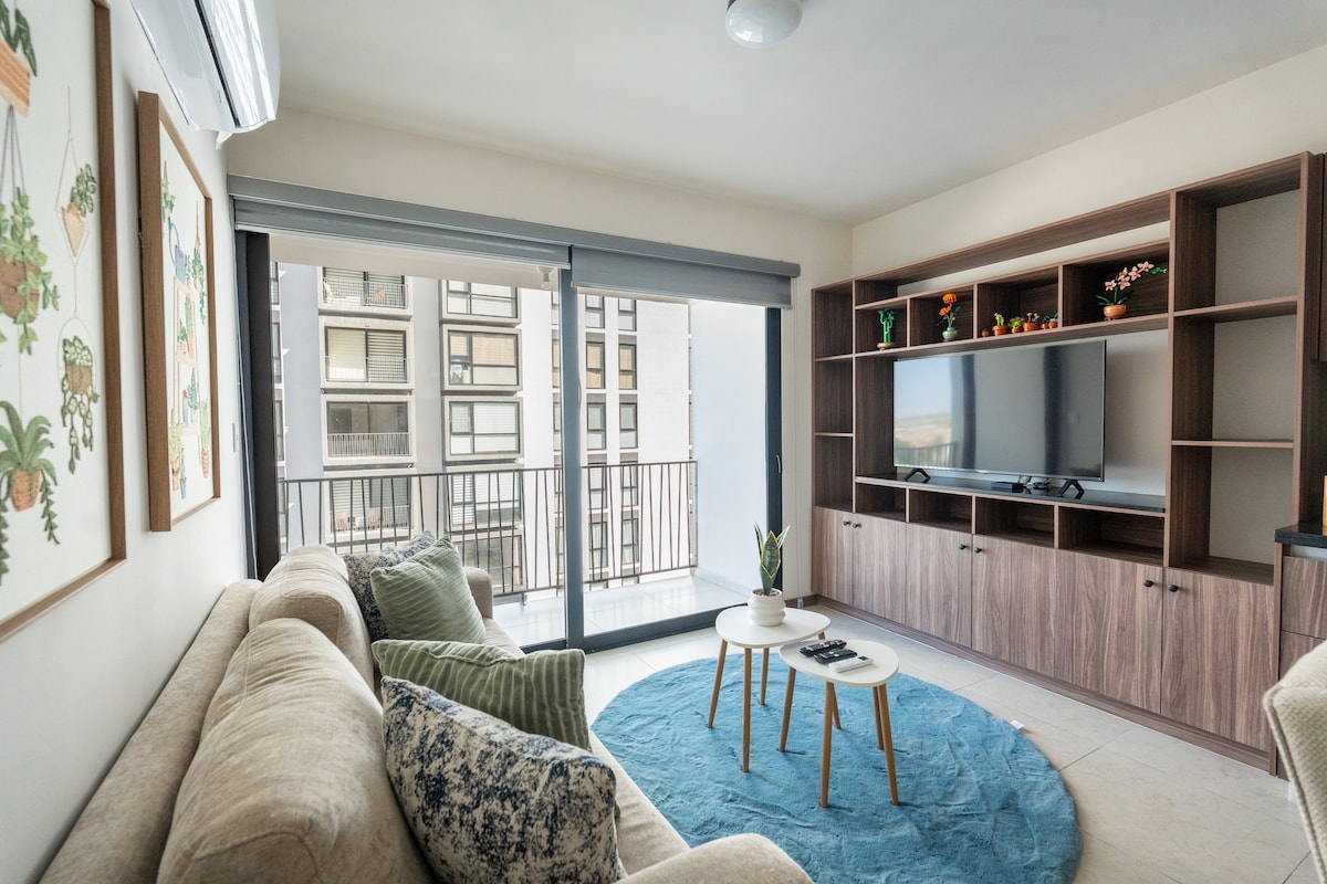 Verbringen Sie einen komfortablen Aufenthalt in unserer NEUEN und gemütlichen Wohnung mit 3 Schlafzimmern, 3 55"-Bildschirmen, ausgestatteter Küche, Waschsalon, 4 Klimaanlagen, 2 Parkplätzen, Annehmlichkeiten wie beheiztem Pool, Fitnessraum, Padel-Tennisplatz, geräumigem und angenehmem Raum für Coworking. Genießen Sie Ihren Aufenthalt in der besten Gegend von Torreón, mit spektakulären Sonnenuntergängen und Panoramablick vom 11. Stock, 5 Minuten von HEB, Galerien und vor dem TSM-Stadion entfernt. Wir haben alles für Ihren angenehmen Aufenthalt