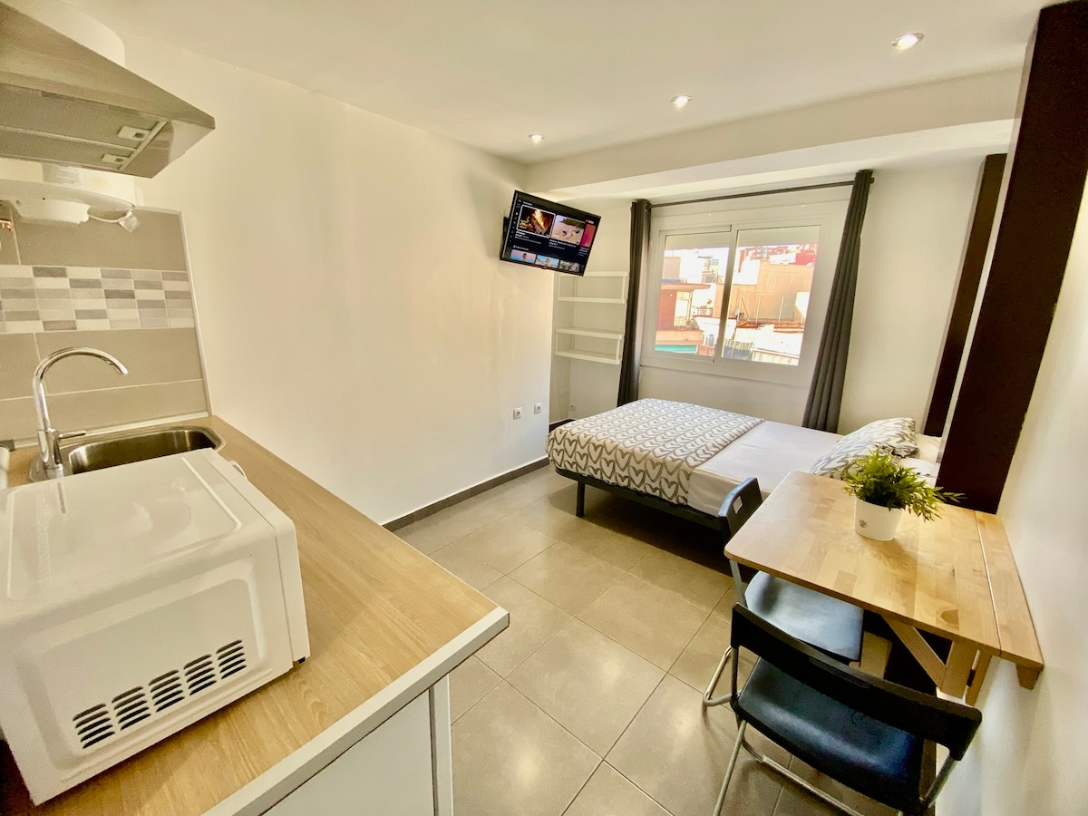 Helle 1-Zimmer-Wohnung (35 m²) mit eigenem Arbeitsbereich und Zugang zur gemeinsamen Dachterrasse. Ideal für Homeoffice oder längere Städtereisen von min. 31 Tagen bis zu 4 Monaten. Das Einkaufszentrum Gran Via 2, ein Kino, Supermärkte (Lidl, Carrefour), Restaurants, Bäckereien, lokale Geschäfte und ein Fitnessstudio befinden sich direkt vor deiner Haustür. Ausgezeichnete Anbindung an die öffentlichen Verkehrsmittel (Bus und Bahn). Schnelle und einfache Fahrt zur Plaza de España: 10 Minuten Plaza de Catalunya: 20 Minuten Flughafen El Prat: 15 Min Castelldefels: 30 Min. Sitges: 50 Min.