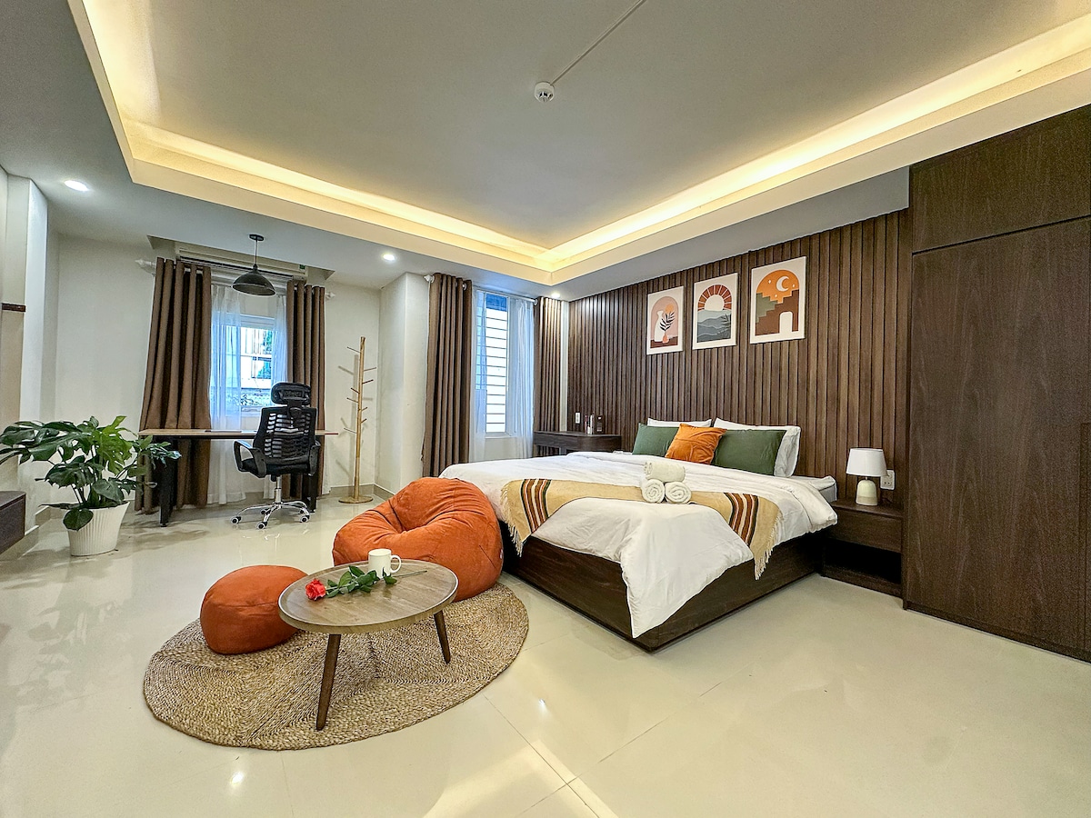 Willkommen in unserem atemberaubenden Studio am wunderschönen My Khe Beach, einem gemütlichen Raum, der dir Komfort und Bequemlichkeit bietet, wenn du nicht zu Hause bist. Von dieser zentralen Lage aus erreichst du bequem alle wichtigen Dienstleistungen und genießt 4-Sterne-Hotelausstattungen wie einen spektakulären Infinity-Pool, einen Fitnessraum und ein Spa (gegen Gebühr). Da es sich um eine Privatwohnung handelt, wirst du nicht an der Alacarte-Hotelrezeption einchecken. Der Zimmermanager wird dich in der Lobby im 1. Stock des Gebäudes treffen und dir beim Check-in behilflich sein.