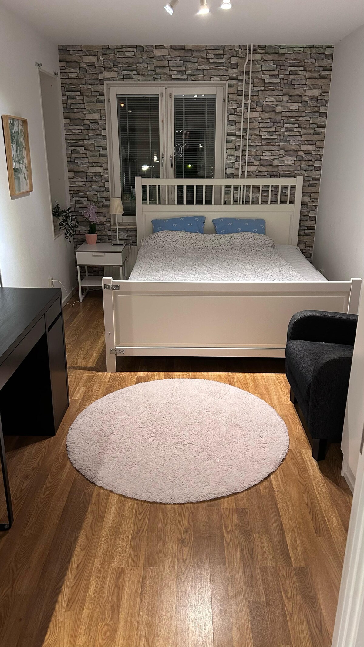 Moderne Erdgeschosswohnung mit eigener Haustür. Eigener Zugang zur Wohnung und zum Garten mit Terrasse. Kostenlose Parkplätze an der Wohnung. Bettwäsche und Handtücher sind inbegriffen. Geschätzte Unterkunft für Geschäftsreisende. Wochen- und Monatsrabatt. Ruhige Wohngegend nahe der E4. 50 m² mit Küche, Schlafzimmer, Badewanne, Waschmaschine, Wohnzimmer, Schlafsofa. Bei der Buchung erhältst du einen persönlichen Code für das intelligente Schloss der Haustür. 250 Meter zum Lebensmittelgeschäft, zur Bushaltestelle. 4 km zum Stadtzentrum