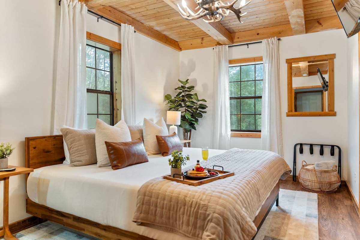 Das ist deine Chance, dich in der Magie eines schicken Berggasthauses zu verlieren, das dir Spa-ähnliche Annehmlichkeiten und die Privatsphäre bietet, nach der du dich sehnst. Ein Ort, der die Einfachheit vergangener Jahre mit den modernen Annehmlichkeiten von heute kunstvoll verbindet. Und wenn du genug langsame Morgen auf der großen Terrasse oder sternenklare Nächte im Whirlpool am Feuer hattest, kannst du dich nach Pigeon Forge wagen, wo der Spaß nie aufhört. Worauf wartest du also noch? Die Berge rufen dich an einen Ort, an dem du keine Sorgen haben kannst.
