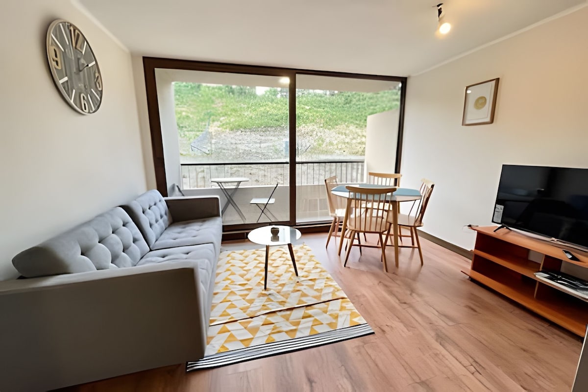 Gemütliche, völlig neue Wohnung mit einem Schlafzimmer und nautisches Etagenbett im Flur. Ideal für ein Paar oder eine Familie, die einen Kurzurlaub in Puerto Varas haben möchte. Küche und Wohnzimmer sind komplett ausgestattet, um deinen Aufenthalt zu einer angenehmen Zeit zu machen. Vor der Küste gelegen, bist du nur wenige Schritte von Restaurants, Cafés, Stränden und Geschäften entfernt. Das Gebäude (Gemeinschaftsraum) verfügt über einen beheizten Pool, einen Aufzug, eine Tiefgarage und einen 24-Stunden-Concierge.