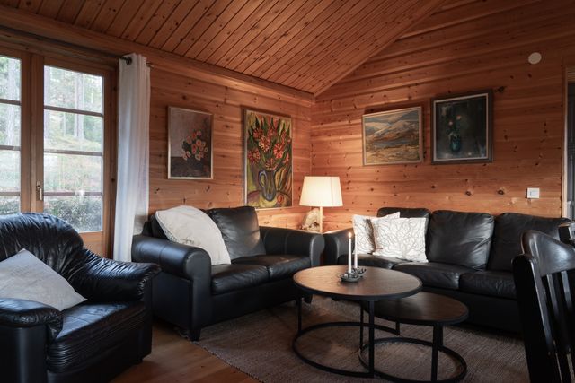 Entspanne dich mit der ganzen Familie in diesem ruhigen Haus. Im Sommer gibt es einen privaten Anlegesteg und ein großes schönes Grundstück. Nähe zum Angeln. Im Winter sind es nur wenige hundert Meter Länge und Schneemobilwege. Ca. 2 km bis zum Slalomhang. Das Ferienhaus ist komplett mit Geschirr, Mikrowelle usw. ausgestattet. Es gibt einen Kamin, in dem du drinnen brennen kannst. Ein Schlafzimmer im großen Ferienhaus mit 4 Betten. Es gibt eine holzbeheizte Sauna, die mitbenutzt werden kann. Der beste Schlitten auf dem Grundstück auf dem Grundstück.