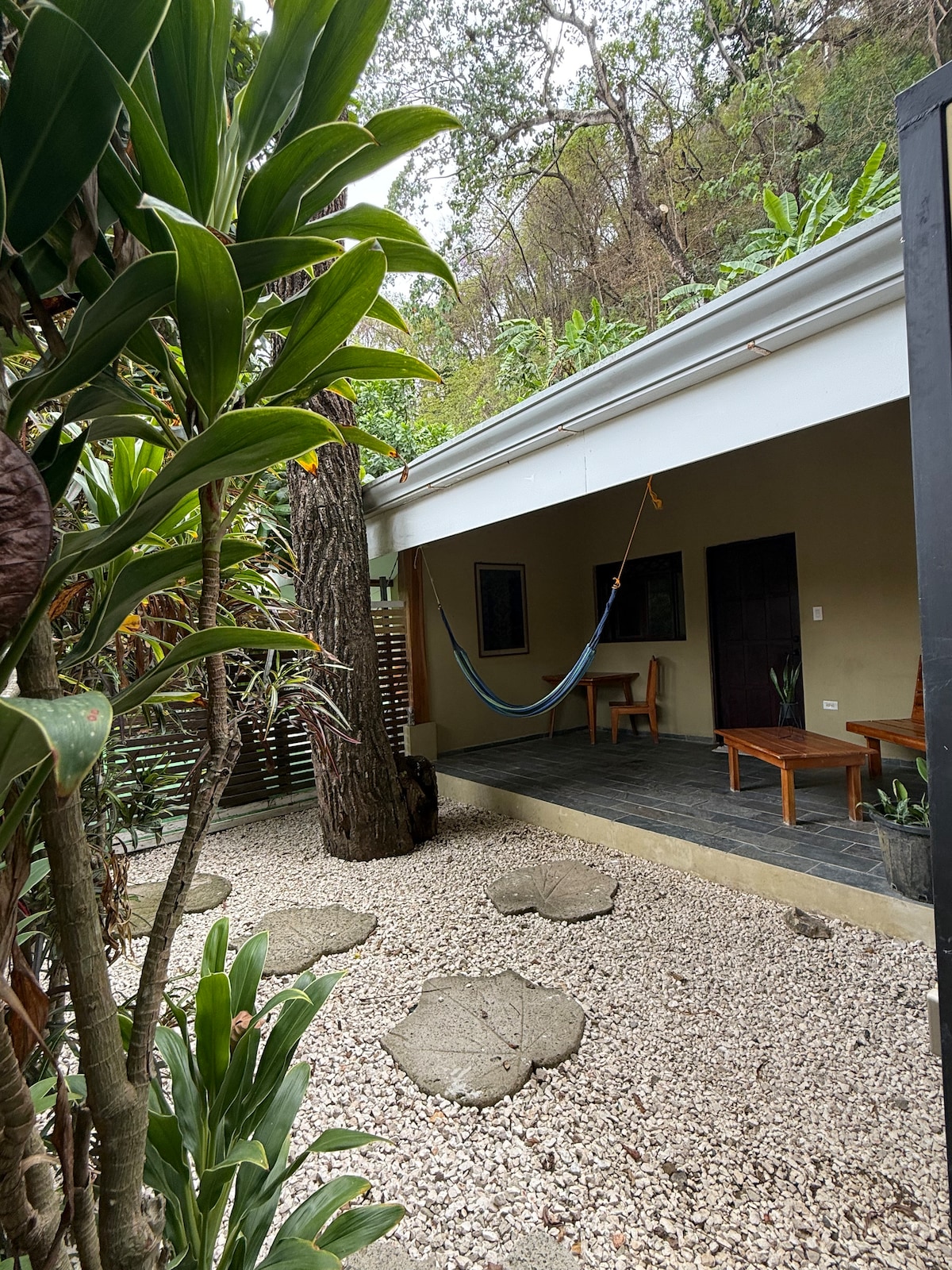 Bitte beachte: Der ermäßigte Preis ist aufgrund von Bauarbeiten nebenan fällig! Nur wenige Gehminuten von den majestätischen Stränden von Malpais entfernt, befindet sich unser modernes Zuhause in einer üppigen Rückzugsgemeinschaft mit 24-Stunden-Sicherheit und einem wunderschönen Gemeinschaftspool 700 m zum Kreuz von Santa Teresa, Restaurants, Banken & Geschäften. Unser ruhiger Kurzurlaub ist perfekt ausgewogen für einen ruhigen Urlaub in einer lebhaften Stadt Unser stilvolles Studio bietet komfortables und vielseitiges Schlafen, eine exquisite Küche, ein gemütliches Wohnzimmer und eine Außenterrasse mit einem hervorragenden Grill