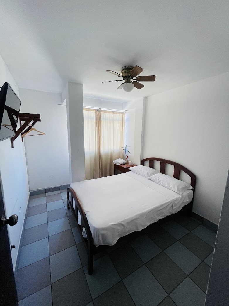 ¡Sea Bienvenido A Nuestro Hotel🏨! Dieses einfache Zimmer (ca. 9 m ²) verfügt über ein eineinhalb quadratisches Bett und ein komplettes privates Badezimmer und befindet sich im ersten Stock eines ruhigen Hotels. Privat und mit der Grundausstattung für deinen Aufenthalt eingerichtet, verfügt es über einen kleinen Kleiderschrank mit einem Kleiderbügel, einem Nachttisch (Kerzenlicht), einem Ganzkörperspiegel und einem Fenster mit Musketiergewebe, um den Zugang von Insekten in sein Zimmer zu verhindern.