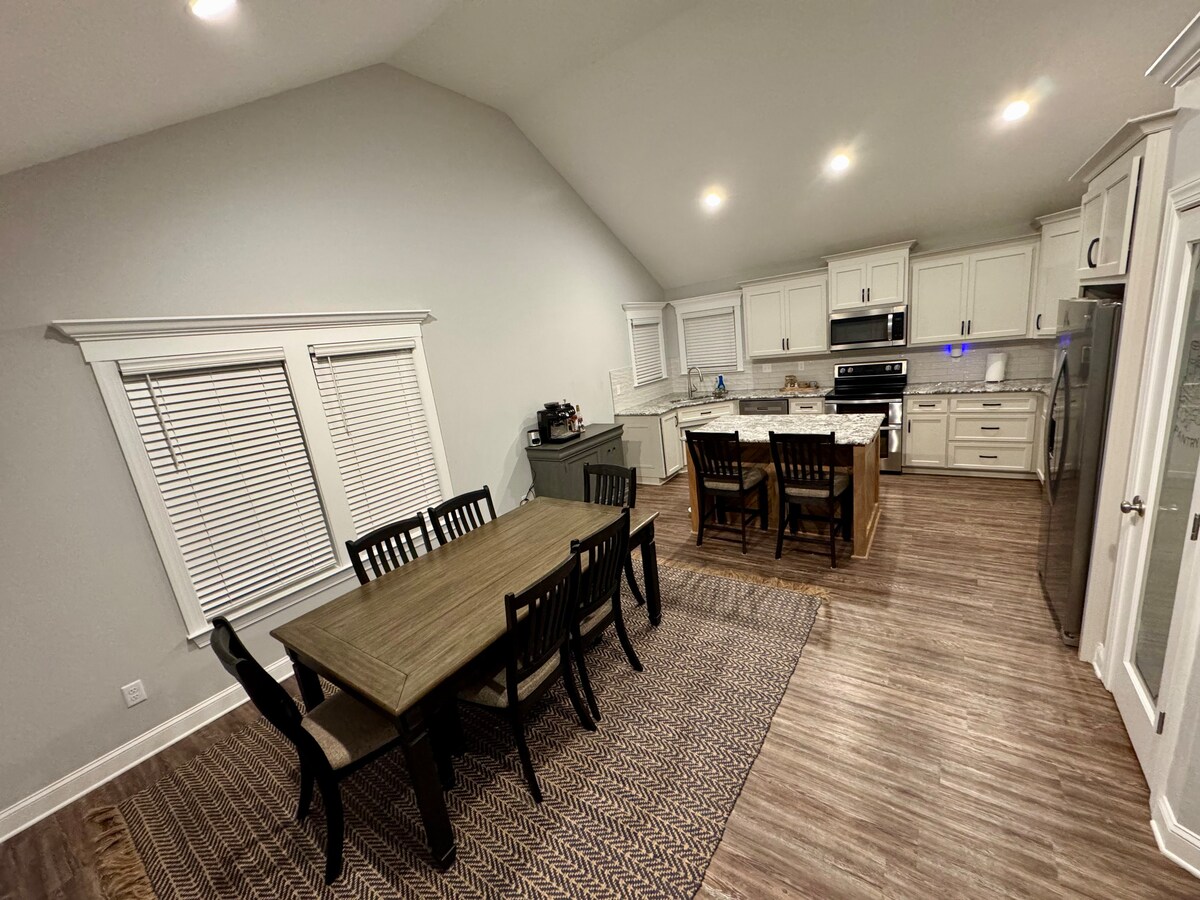 Willkommen in deinem Rückzugsort am See – wo der Morgen mit Kaffee auf der umlaufenden Veranda beginnt und das ruhige Wasser das Tempo für den Tag vorgibt. Verbringe Nachmittage mit Angeln vom Dock, Paddeln in den Kajaks oder einfach nur mit dem Genießen der friedlichen Aussicht. Feuere den Grill für ein einfaches Abendessen an, während die Sonne untergeht, und versammle dich dann im Inneren für einen Filmabend mit Fernsehern im ganzen Haus. In diesem Seehaus dreht sich alles darum, langsamer zu werden, Erinnerungen zu schaffen und einfache Momente am Wasser zu genießen.