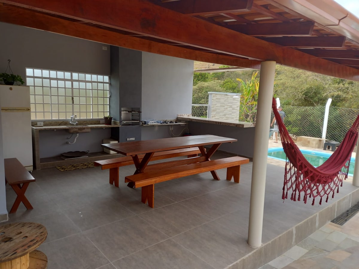 Platz für Saison- und Wochenendvermietungen. Umgebung mit Schwimmbad, Gourmetbereich und Haus mit vier Schlafzimmern. Neben Wasserfällen. Das Gehege ist auch ideal für Ritter. Die Unterkunft befindet sich an der Route, die die Pilgerfahrten nach Aparecida machen.