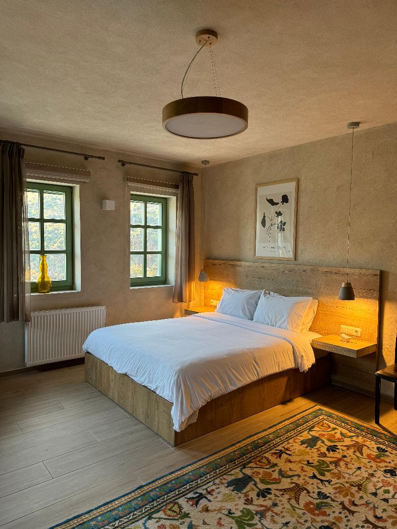 Dieses geräumige Zimmer ist ideal für ein Pärchen oder eine Familie mit drei Mitgliedern. Dieses Zimmer bietet einen ziemlich privilegierten Blick auf Aristi, Vikos, Megalo und Mikro Papingo sowie die umliegenden Berge.