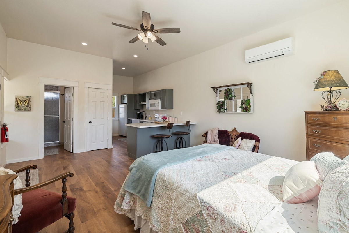 Cozy, private guesthouse in a petite westernesque town. You'll have own kitchen, hammock, 1 queen bed, 1 twin bed (xs), WiFi, TV/Netflix, AC, own separate entry, and optional cot-bed for a 4th guest. The cottage is well equipped, clean, newly built and is in a quiet area for a great night's rest. Visit wineries, surrounding historic towns, Shaver Lake, Yosemite. Located at the center of California, it's an ideal place for your continued travels towards National Parks, beaches, and larger cities.