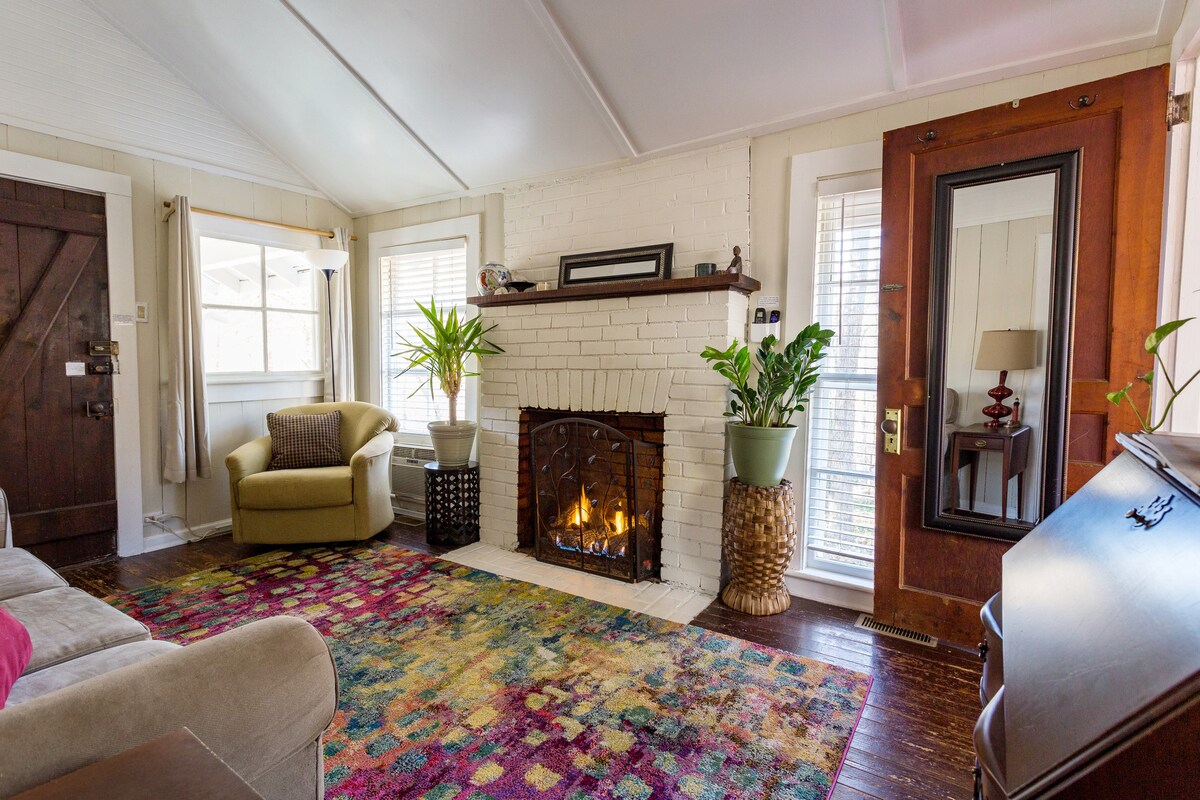 Diese Hütte wurde 2019 von Hand gebaut und ist sowohl auf Stil als auch auf Ruhe ausgelegt. Es ist ein perfekter Ort für Künstler und Schriftsteller, um Inspiration zu finden, oder für Gäste, die sich mit der Natur verbinden möchten, indem sie einfach mit den Bäumen aufwachen. Die Hütte ist ein BIPOC, LGBTQIA+ sicherer Raum, fungiert teilweise als informeller Künstlerwohnraum für unsere Freunde und Genossen und Gäste, die hier übernachten, werden es eher als häusliche Umgebung statt als Hotel empfinden.