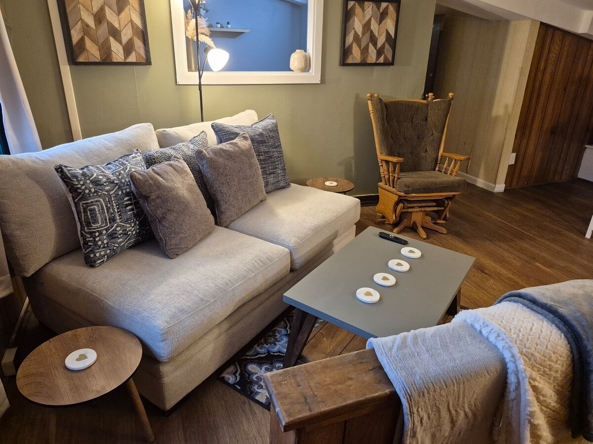 Willkommen! Wir würden uns freuen, dich in unserer gemütlichen, einladenden Wohnung als Gast aufzunehmen. Es ist der perfekte Ort für bis zu vier Gäste, um sich zu entspannen und sich wie zu Hause zu fühlen. Genieße deinen eigenen privaten Eingang und viel Platz zum Entspannen. Egal, ob du geschäftlich, für einen Familienurlaub, eine Hochzeit oder einfach nur zur Erkundung der Gegend hier bist, wir sind hier, um deinen Aufenthalt so angenehm und unvergesslich wie möglich zu machen. Falls du Fragen hast, kannst du dich gerne bei uns melden - wir helfen immer gerne! ***Neu aktualisiert***