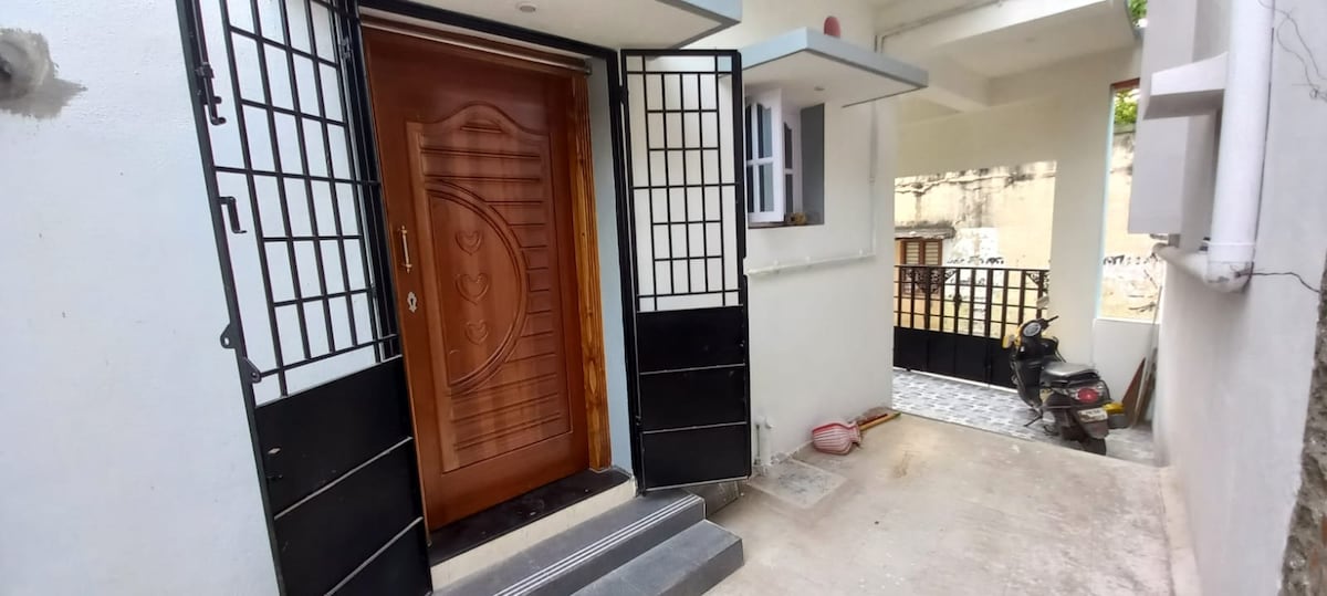 Es ist eine 2-Zimmer-Wohnung im zweiten Stock in zentraler Lage in einer ruhigen Gegend. *Parkplätze stehen im Gemeinschaftsbereich zur Verfügung. ** gute Hotels und Einkaufsmöglichkeiten in der Nähe *** Für Reisen zu nahe gelegenen Orten auf ein-/zweitägigen Ausflügen wird 𝗦𝗲𝗹𝗳 𝗗𝗿𝗶𝘯𝗲 𝗙𝗶𝘯𝗰𝗮𝗿𝗲𝗰𝗮𝗿 zu wettbewerbsfähigen Preisen arrangiert (Azhagar kovil, Rameswaram Trichy, Kodaikanal usw.)
