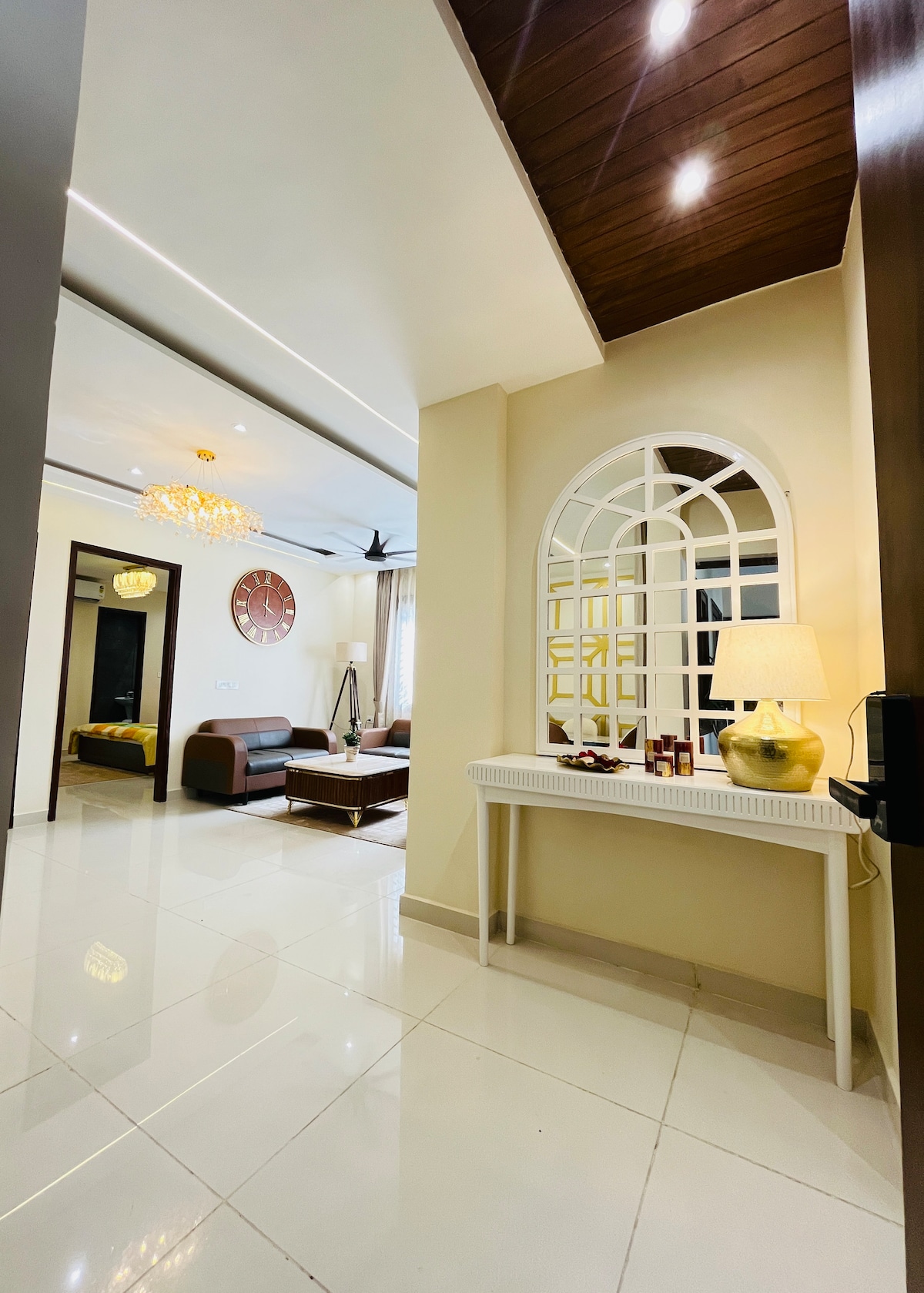Geräumige Unterkunft mit 1 Schlafzimmer | Perfekt für Paare und Reisende Genieße eine private unabhängige 1BHK-Wohnung mit einem geräumigen Wohnzimmer, Aufzug und kostenlosen Parkplätzen. Paar-freundlich, party-freundlich und in einem lebhaften Markt mit Gopals, KFC, McDonald's, Swagath Bar, Pyramid & mehr vor der Haustüre. 📍 Am Chandigarh–Manali Highway, Kharar – nur 15 Minuten von Chandigarh, 20 Minuten von der CP67 Mall und 40 Minuten von der Elante Mall entfernt. Perfekt für einen gemütlichen Aufenthalt oder einen lustigen Treffpunkt!