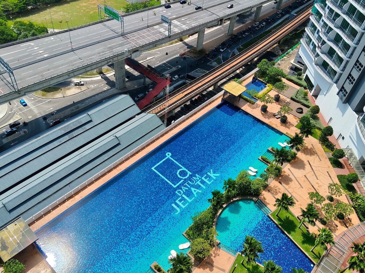 Übernachte im Herzen von Kuala Lumpur mit direktem überdachtem Zugang zur LRT-Station Jelatek – nur eine Haltestelle zum KLCC und den Petronas Twin Towers! Diese moderne, stilvolle Wohnung ist dein perfekter Ausgangspunkt, um die Stadt zu erkunden, Genieße Annehmlichkeiten, Infinity-Pool, Fitnessraum, Whirlpool, voll ausgestattete Küche, WLAN, Smart-TV und gemütliche Schlafzimmer mit hochwertiger Bettwäsche. Ideal für Familien, Paare, dieses zentral gelegene Juwel ist nur wenige Minuten von den wichtigsten Sehenswürdigkeiten, Restaurants und Einkaufsmöglichkeiten entfernt. Erlebe das Beste von KL mit Leichtigkeit