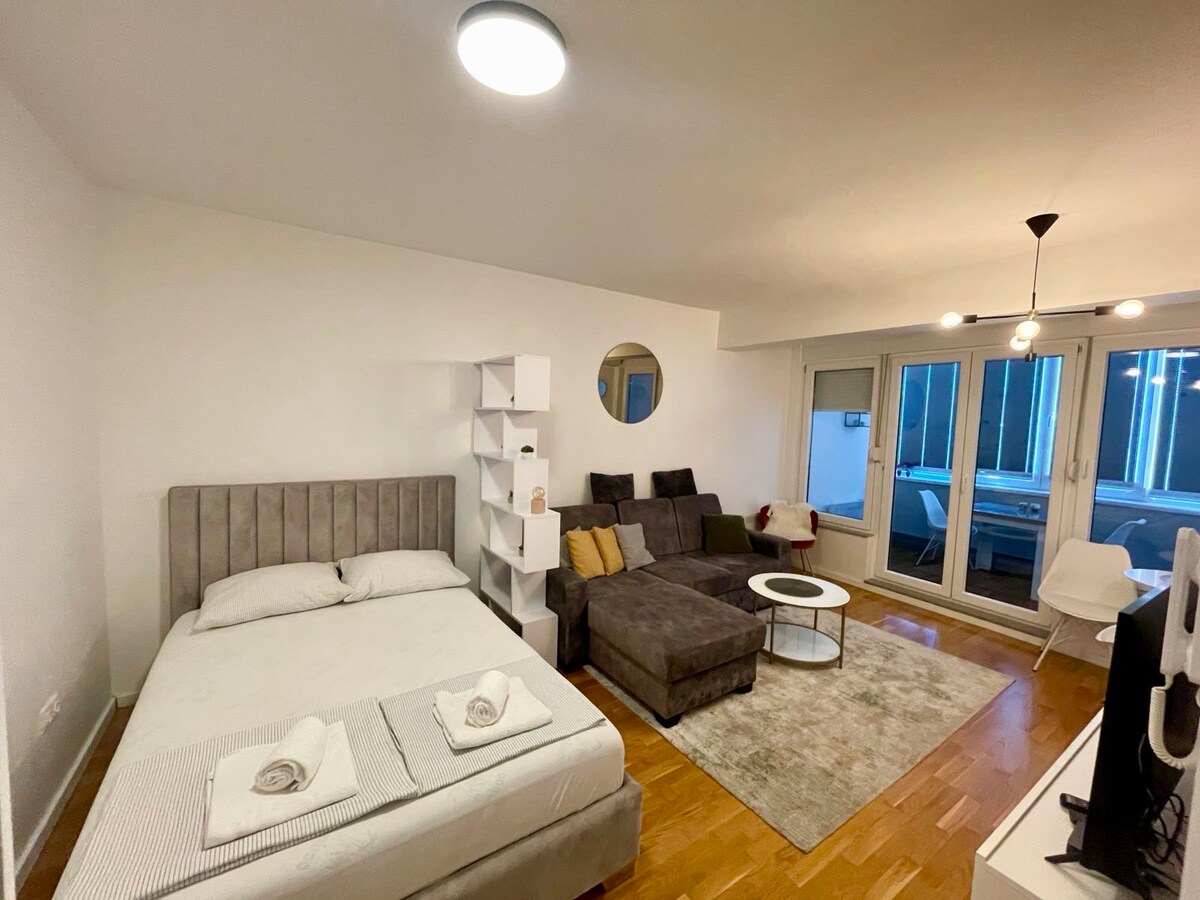Miete pro Tag Studio-Apartment mit Dachterrasse – Apartment mit Aussicht Entspanne dich in einer komplett renovierten und ausgestatteten Studio-Wohnung und genieße einen einzigartigen Blick auf die Stadt. Im Stadtzentrum, mit hervorragend ausgestatteter Küche, Badezimmer und Terrasse, Smart-TV (einschließlich Netflix, HBO GO, Primevideo), kostenlose Parkplätze. Erlebe Mostar aus einer anderen Perspektive.