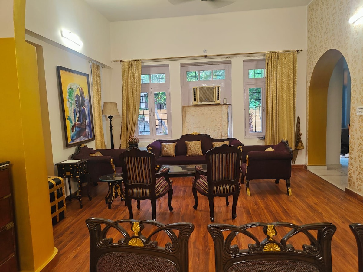 Tritt ein in den zeitlosen Charme von Kuckoo's Villa — einem wunderschön restaurierten Bungalow aus dem Jahr 1949, eingebettet in üppiges Grün in Model Town, Jalandhar. Umgeben von blühenden Champa-Bäumen, einem ruhigen Fischteich und eleganten goldenen Säulen. Perfekt für Familien, Paare, Gruppen oder Langzeitreisende. Entspanne dich in geräumigen Zimmern, entspanne dich im Garten oder genieße hausgemachte Mahlzeiten, die von unserem Hausmeister zubereitet werden. Ganz gleich, ob du für Freizeit, Arbeit oder einen Kurzurlaub hier bist: Dies ist ein Aufenthalt, an den du dich erinnern wirst.