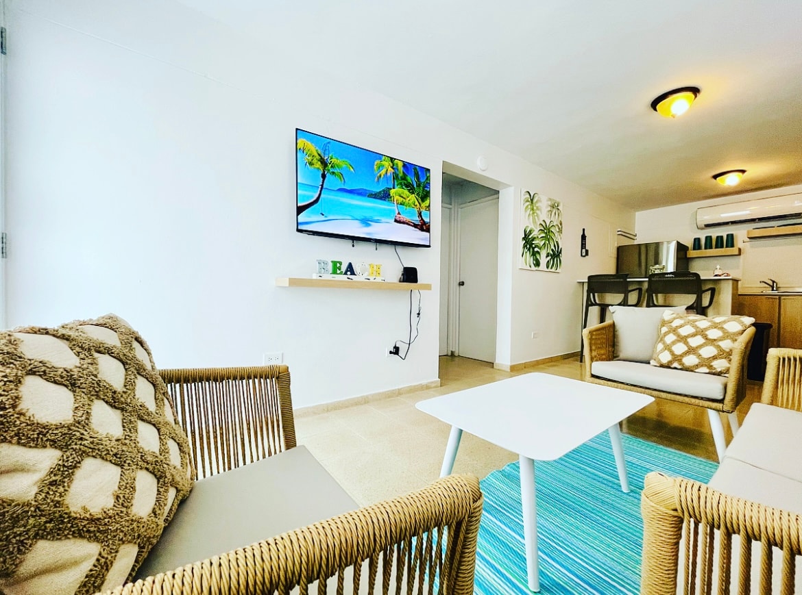 Modern and new. Truly front row ocean views from private balcony and living room. Gated entrance with personal parking space. Air conditioned in all rooms & immaculately kept. Beach towels, cooler & chairs provided. Specialty soaps and snacks included. Family games. Pillow top mattresses, plush towels & bedding. Smart TVs, wifi, and stocked kitchen. Walking distance to the Kioskos, close to El Yunque, Hacienda Carabali ATVs, jet skis, bioluminescent bay, golf and more. 35 min to the airport.