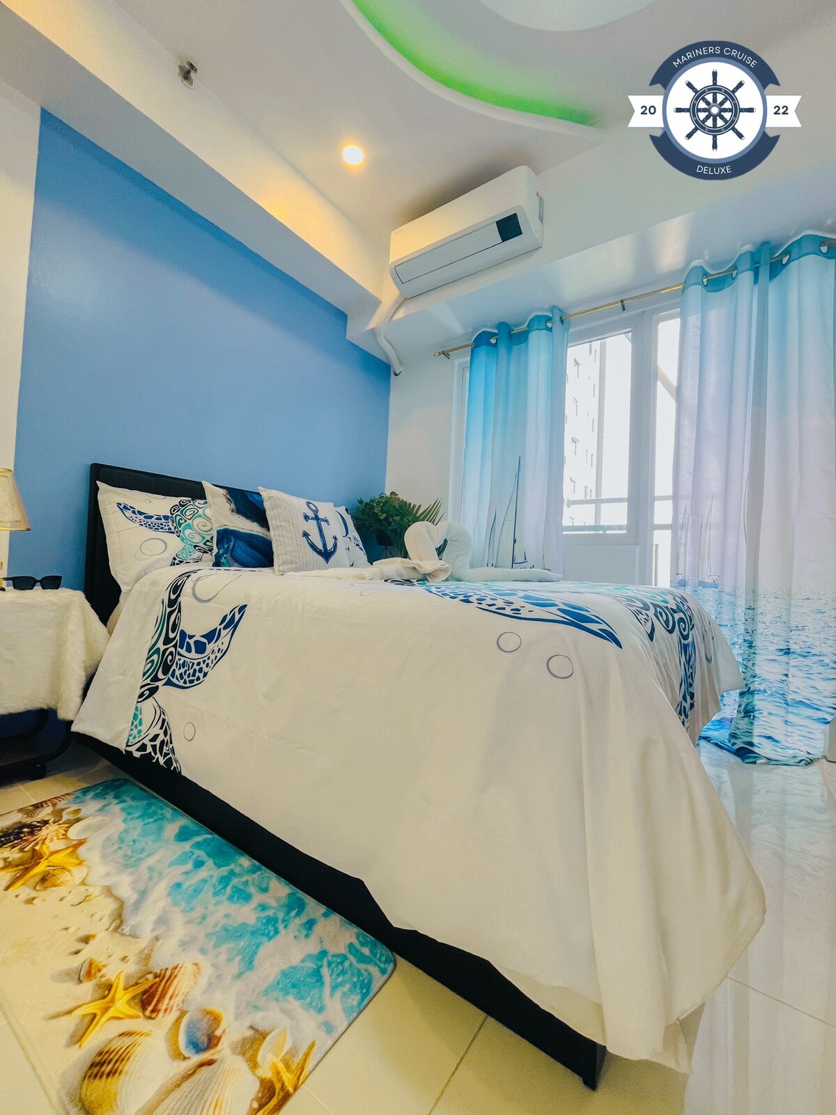 Fernarbeit (mit einem 300-Mbit/s-WLAN) oder einen Aufenthalt (mit Netflix auf einem 50-Zoll-Fernseher) wünschen? Mach dir keine Sorgen mehr, da unser gemütliches 1-BR-Paradies in der Azure Urban Resort Residence, dem ersten großen, von Menschenhand geschaffenen Strandparadies in Metro Manila, beide Bedürfnisse erfüllen kann! Das Resort liegt nur 13 km vom Flughafen NAIA und nur 700 m von der SM Bicutan Mall entfernt und bietet eine fantastische Aussicht und erstklassige Annehmlichkeiten wie einen weißen Sandstrand, einen Wellenpool, eine Strandbar, ein Spa und ein Kinderspielzimmer, um nur einige zu nennen.