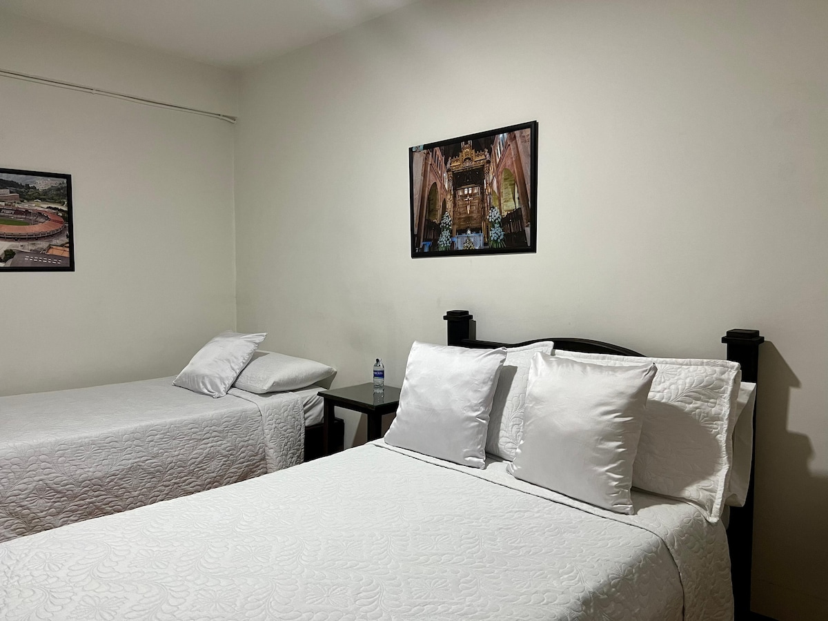 Entdecke das Hotel Boutique Paralela Real in Manizales. Ein Raum, der für stilvolle Erholung, persönliche Betreuung und einzigartige Details gestaltet wurde. Komfortable Zimmer, Frühstück inklusive und eine erstklassige Lage, um die Stadt zu erkunden. Erlebe ein authentisches und unvergessliches Boutique-Erlebnis. Geräumiges und komfortables Zimmer, ausgestattet mit einem Queensize-Bett (1,60 m), ideal für diejenigen, die Ruhe suchen, ohne auf Eleganz zu verzichten. Perfekt für Paare oder Alleinreisende, die Wert auf Komfort legen.