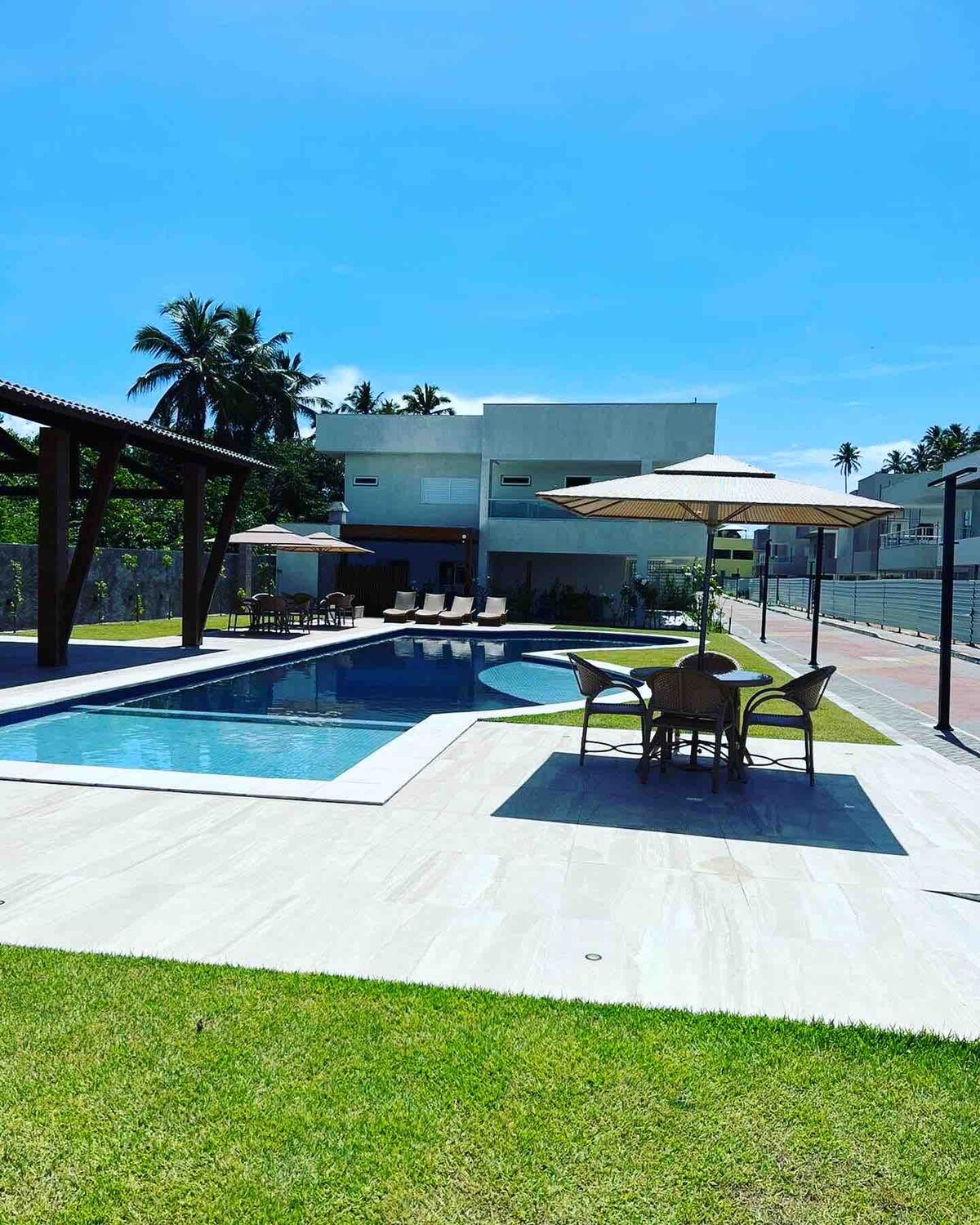 Diese elegante Unterkunft mit allem Komfort , in einer geschlossenen Wohnanlage und einem 24-Stunden-Concierge, hohem Standard, im Praia de Antunes, 150 m vom Meer entfernt, für einen komplett bewaldeten privaten Zugang, mit einem privaten Swimmingpool und einem Whirlpool, einer Gourmet-Küche mit Gasgrill, Klimaanlage in allen Suiten und einer zentralen Klimaanlage, einem Wohn- und Esszimmer! Lehn dich zurück und genieße dieses alagoische Paradies!