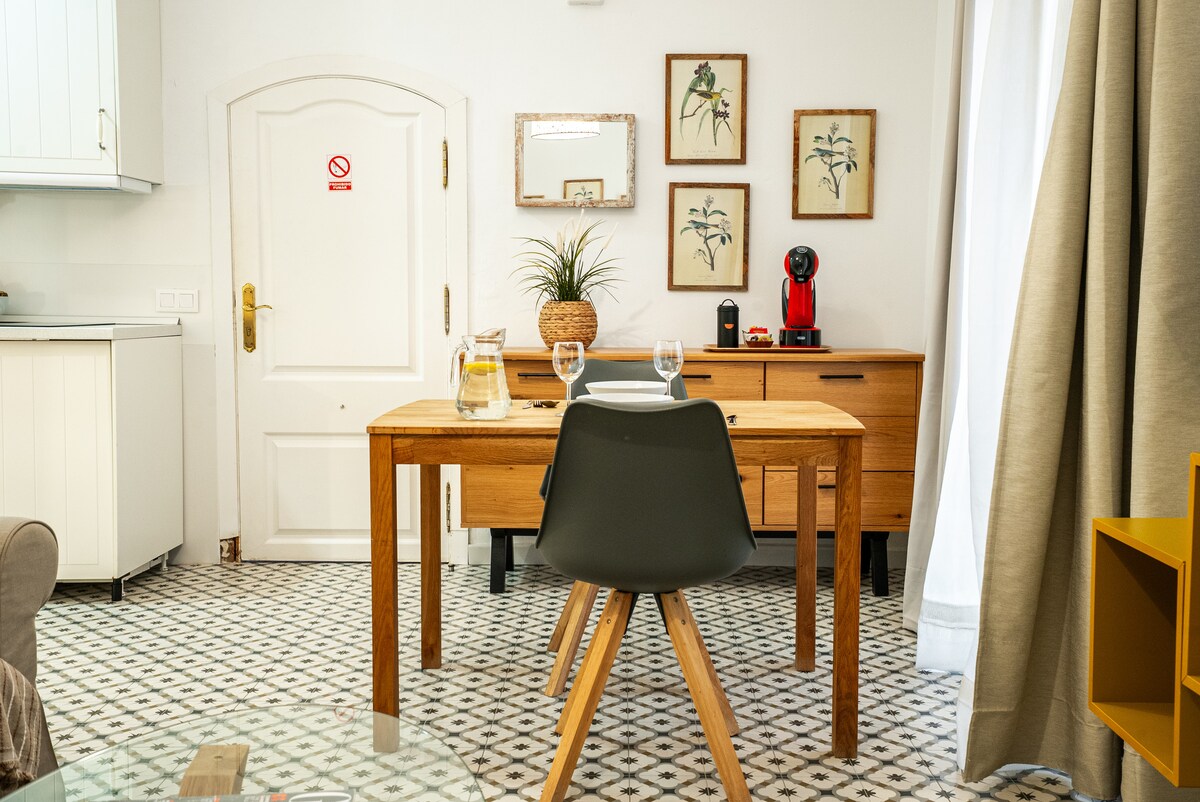 Genieße die Einfachheit dieses ruhigen und zentralen Hauses mit Blick auf das Meer und die Berge. *Sonnenbalkon mit Meer- und Bergblick * Parken auf der Straße nach dem Prinzip „First Serving“ * Kostenlos inbegriffen: Kaffee,Bier,Oliven,Tee,Wasser. *10 Gehminuten von der Altstadt und der Plaza de los Orangejos, dem Strand und Yachthafen von Marbella entfernt. Die Wohnung ist 2024 komplett renoviert, in einem Gebäude aus den 1970er Jahren.